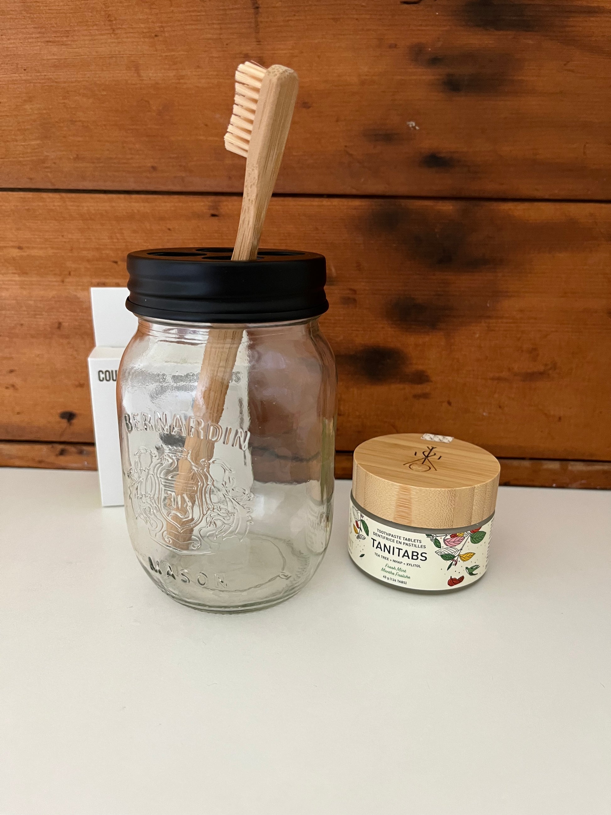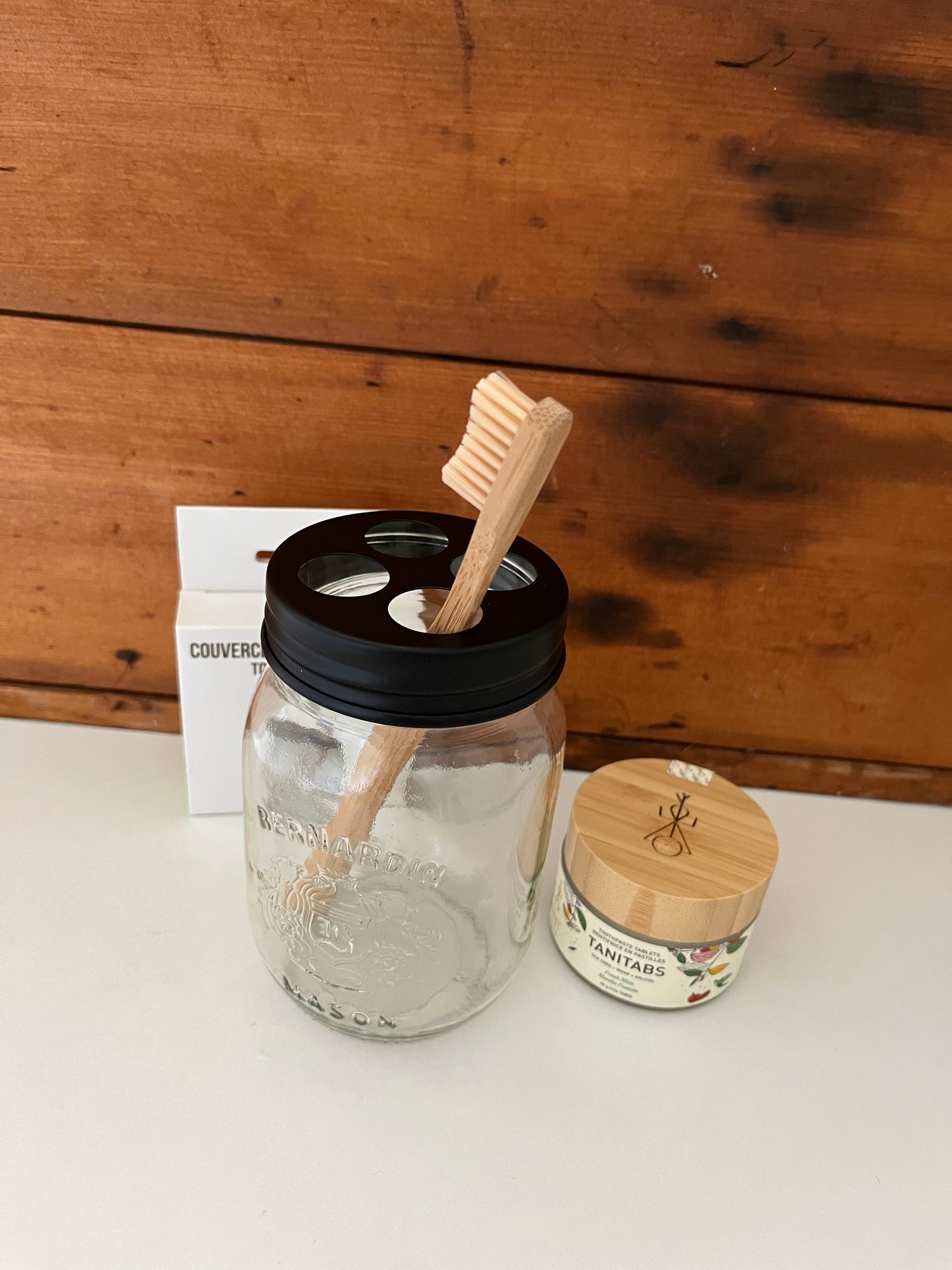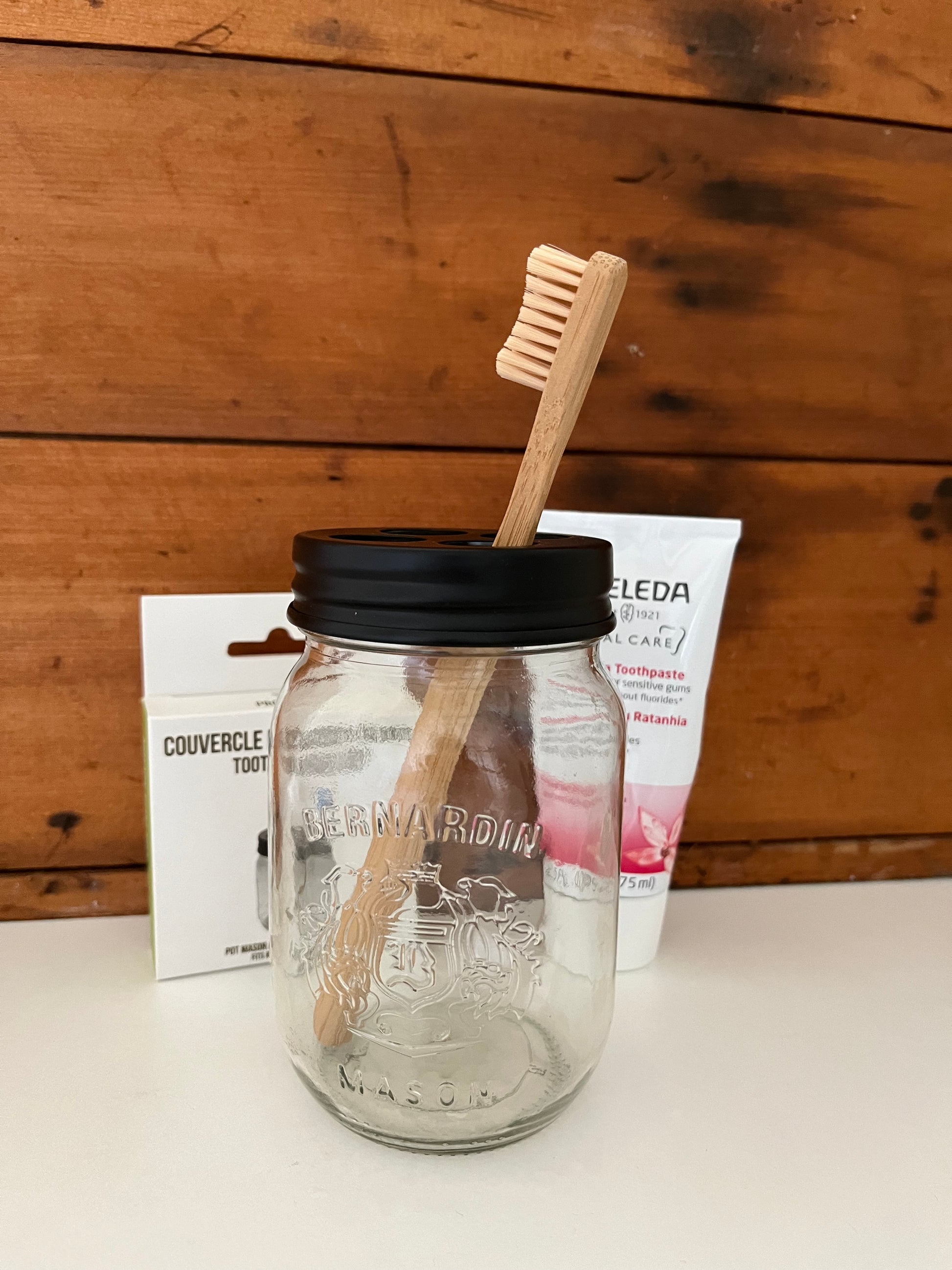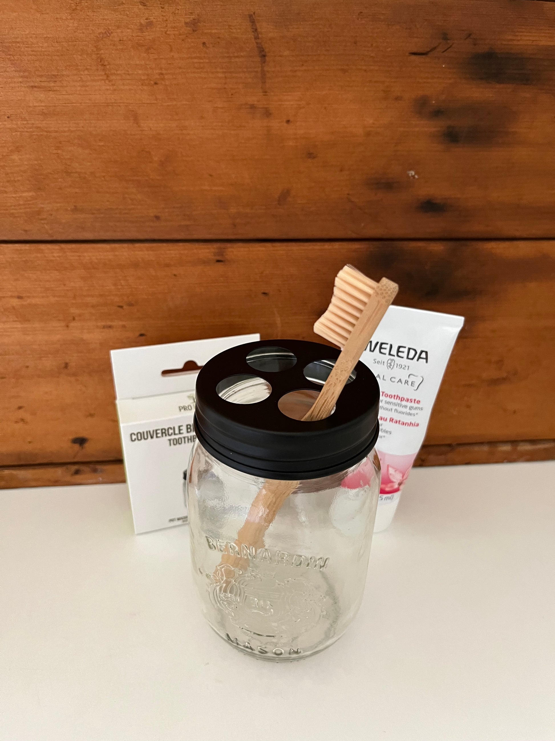 Eco-Home Product - TOOTHBRUSH LID for Mason Jar, re-usable!