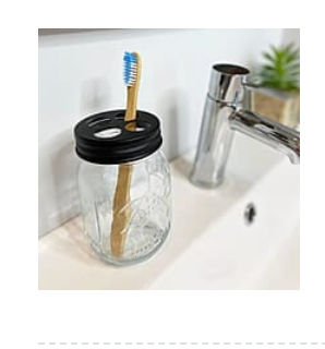 Screw this black, matte metal TOOTHBRUSH LID onto any regular mason jar,... et voila! Easily cleanable, aesthetically pleasing...inexpensive. Holes for 4 toothbrushes.