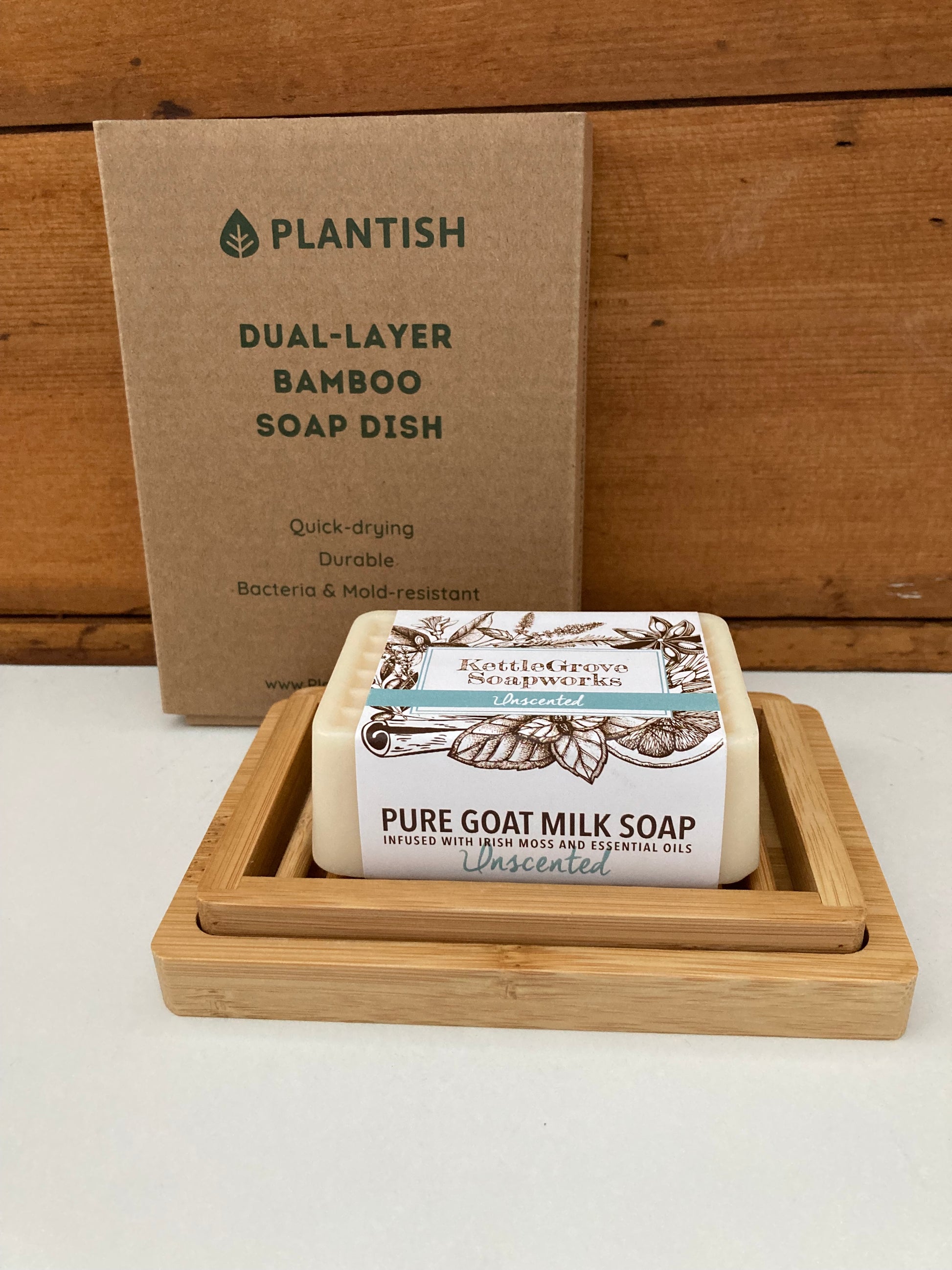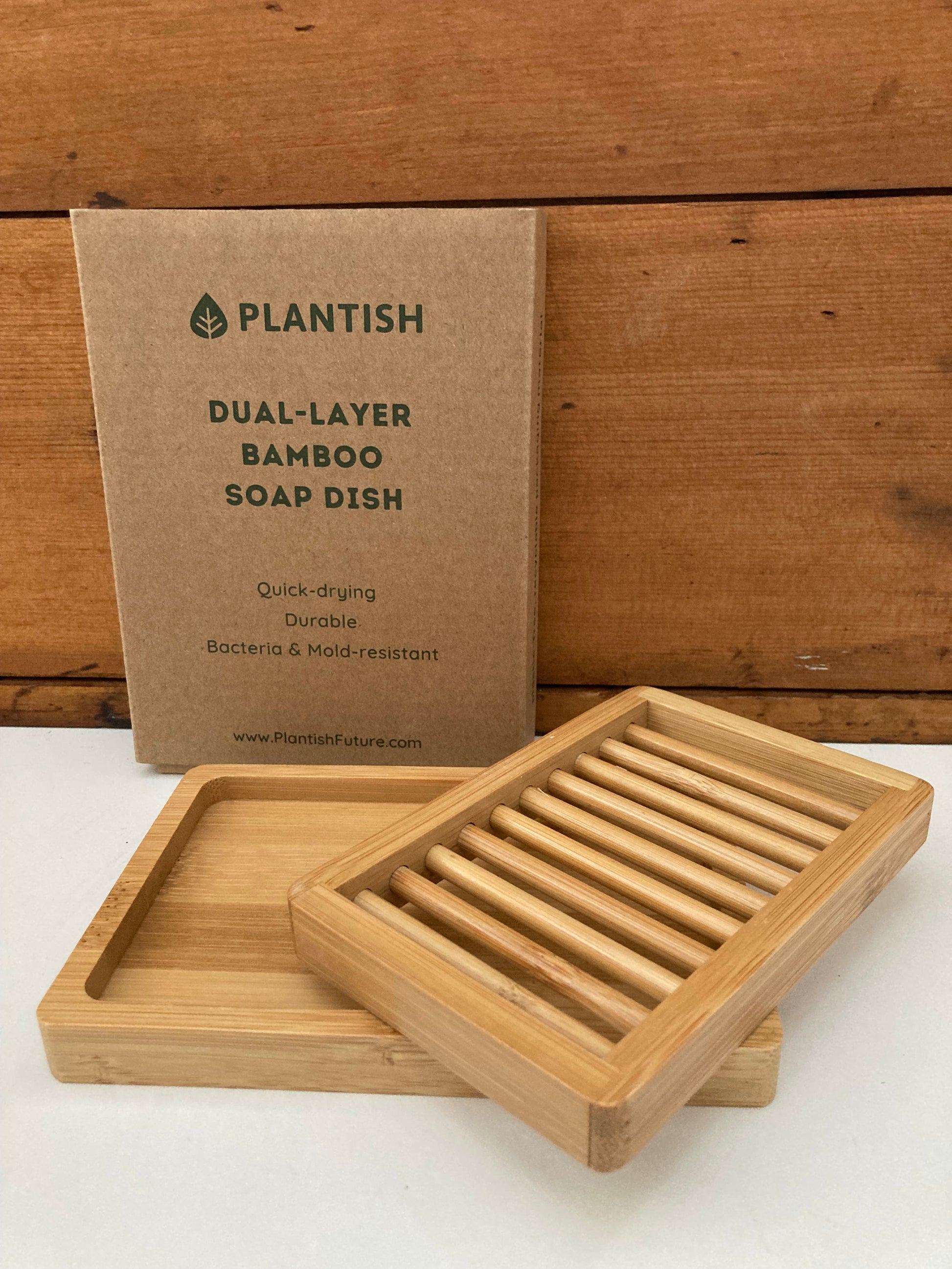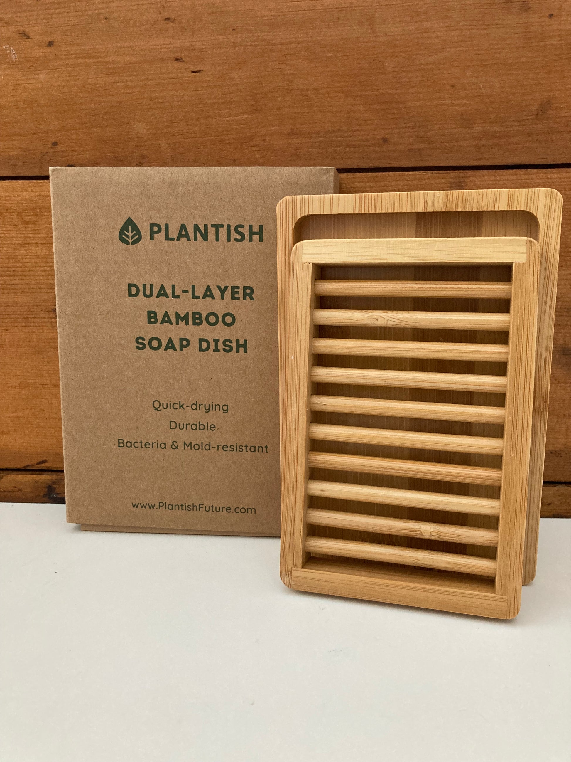 You will love the end of messy soap with this Dual-Layer BAMBOO SOAP DISH with DRAIN PAD!