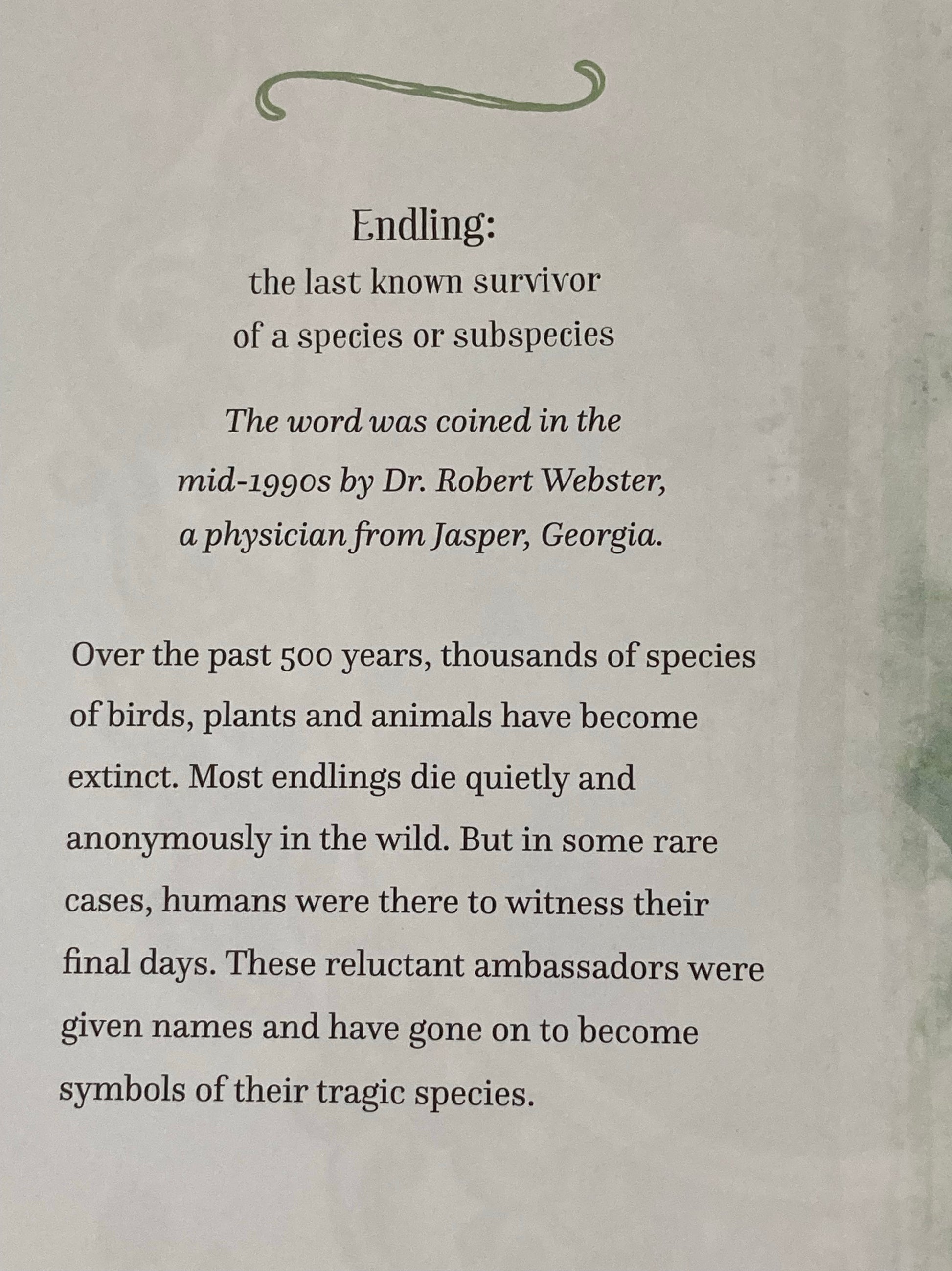 The word Endling was first used in the mid-1990s by Dr. Robert Webster.