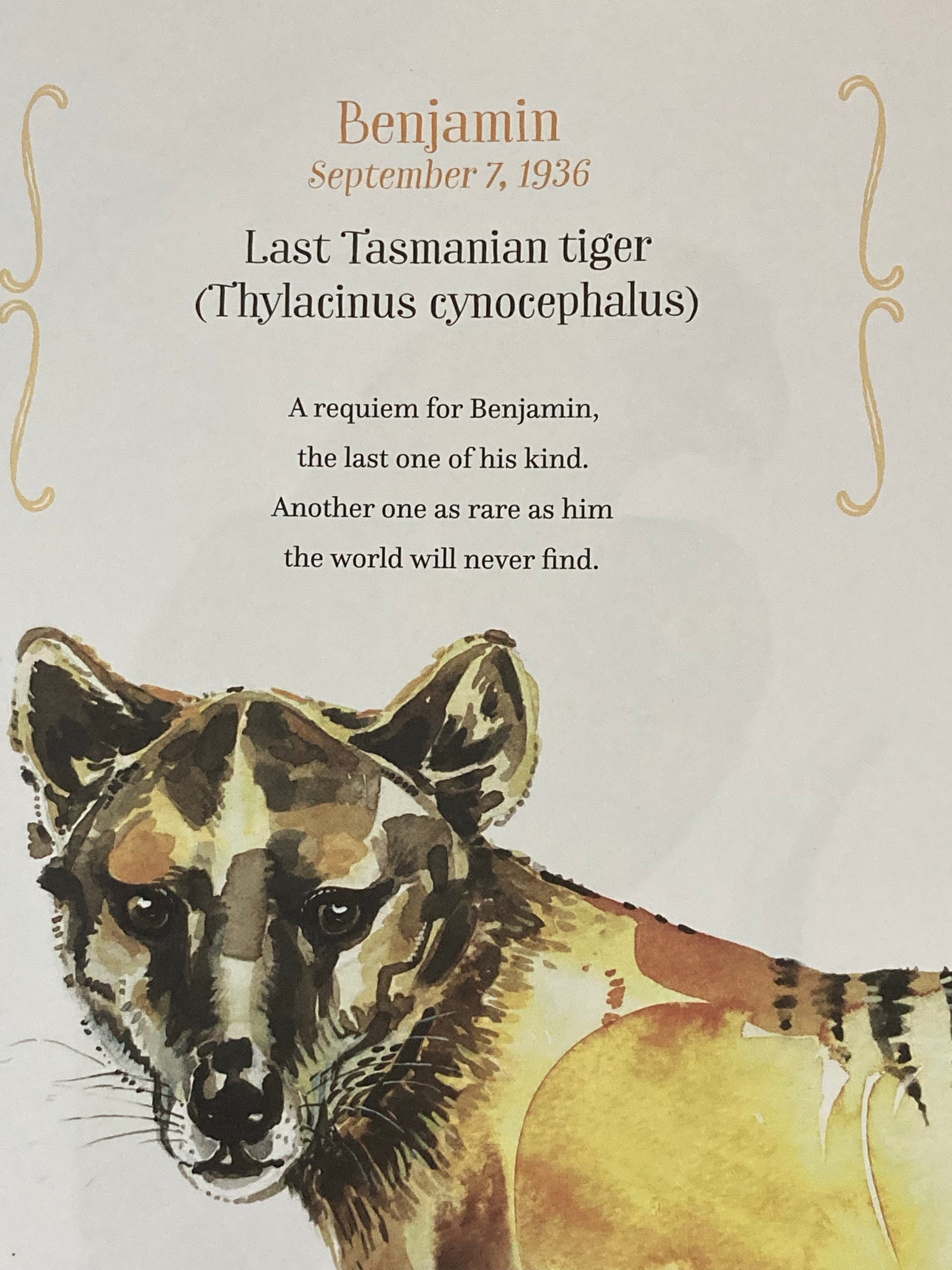 THE LATE, GREAT ENDLINGS tells the very poignant story, in lovely rhyming prose, of eight animals. They all had names and were under close scientific observation...some were still in the wild, some were in captivity. But, in each case they were the last known survivor of their species.