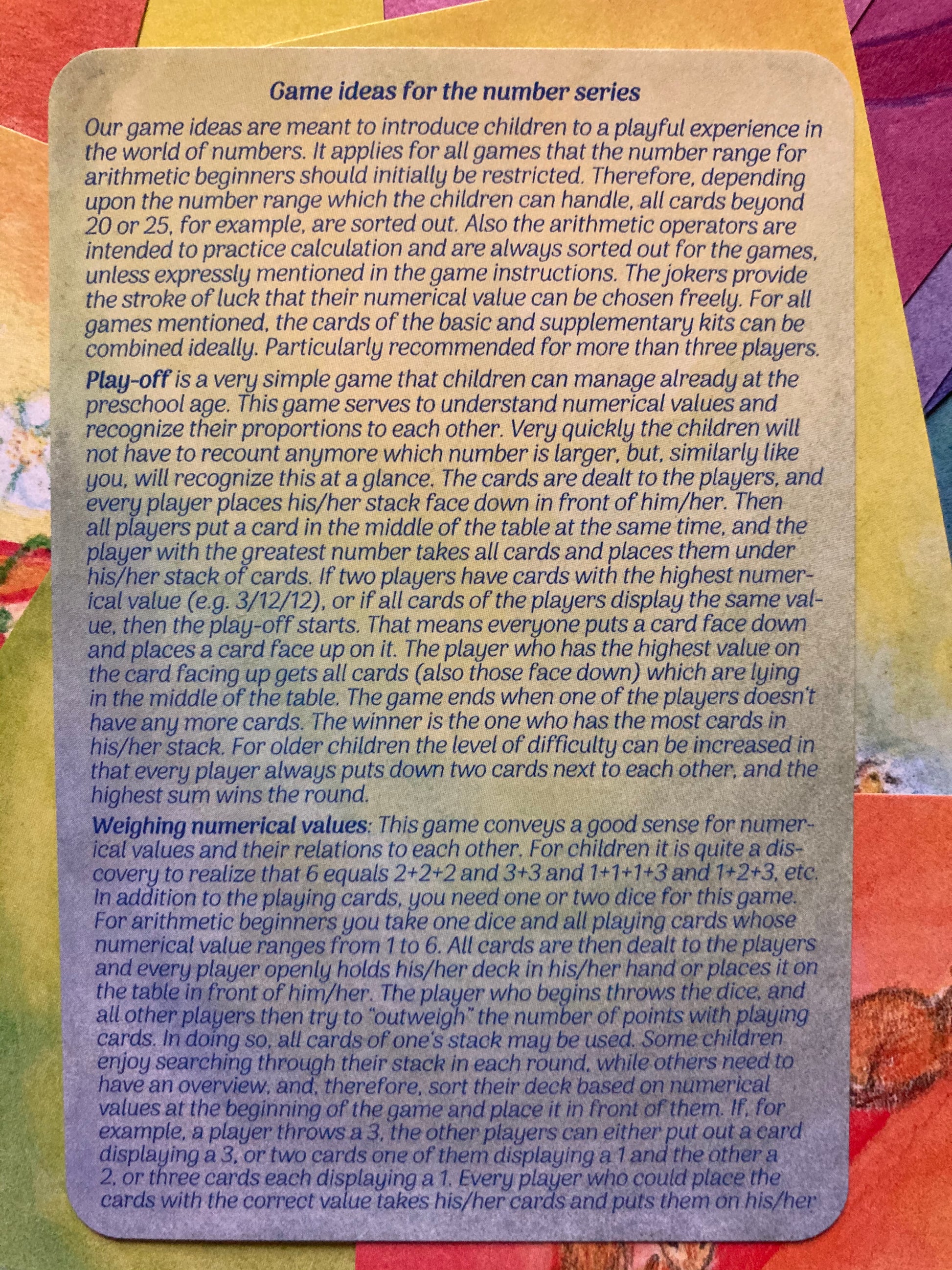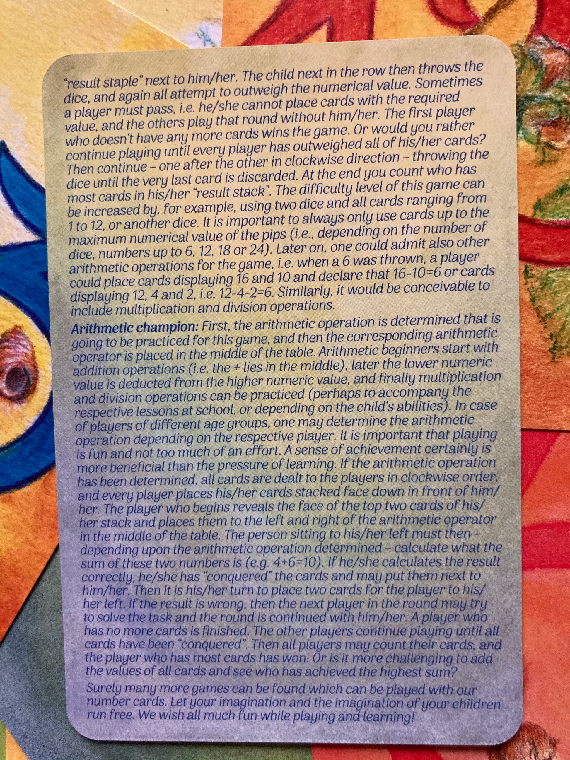 48 beautifully painted game cards from Grimm's Workshop in Germany. Showcasing NUMBERS with ANIMALS and PLANTS from around the World. Will make learning math fun!