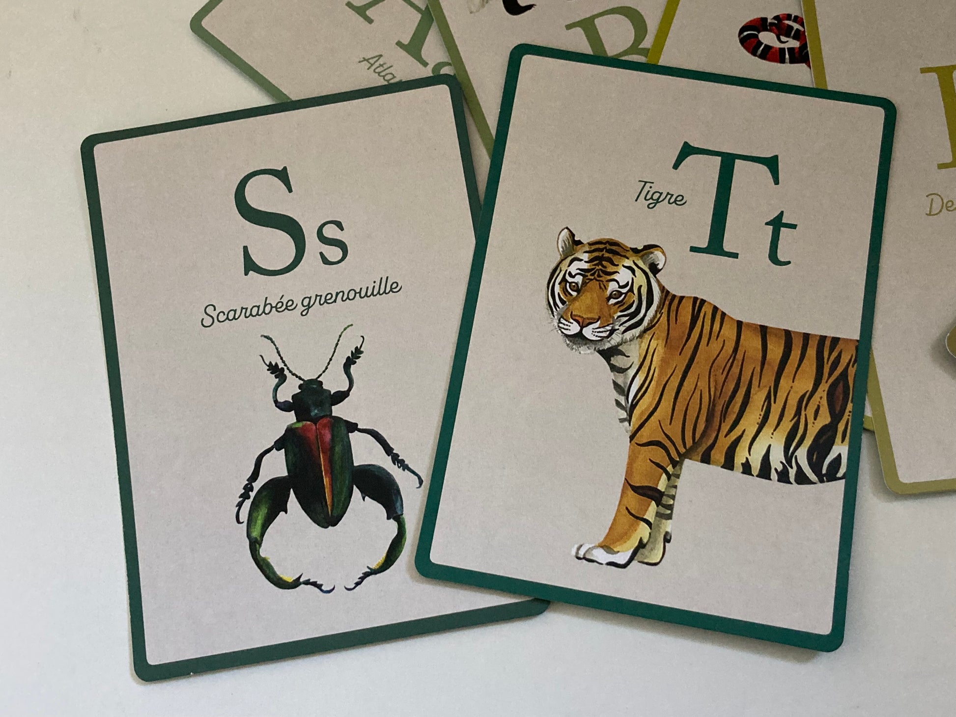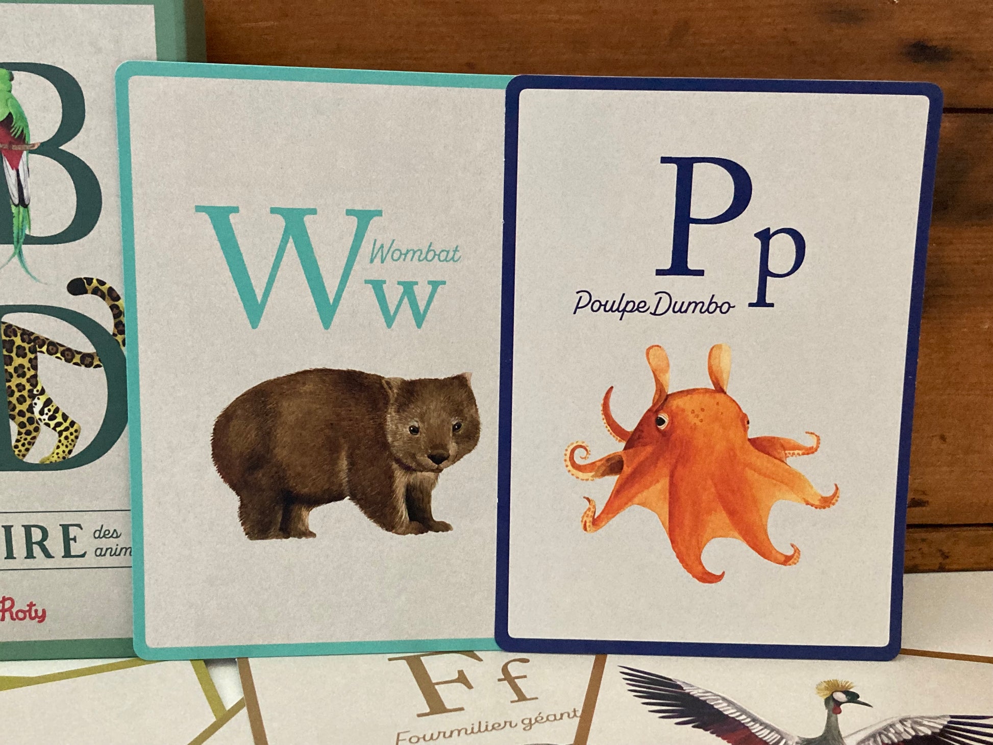 Each large card in this set of ANIMAL ALPHABET CARDS represents one of the 26 letters of the alphabet. The names of the animals are in French, so you can learn their names too! NOTE: The names are only in French.