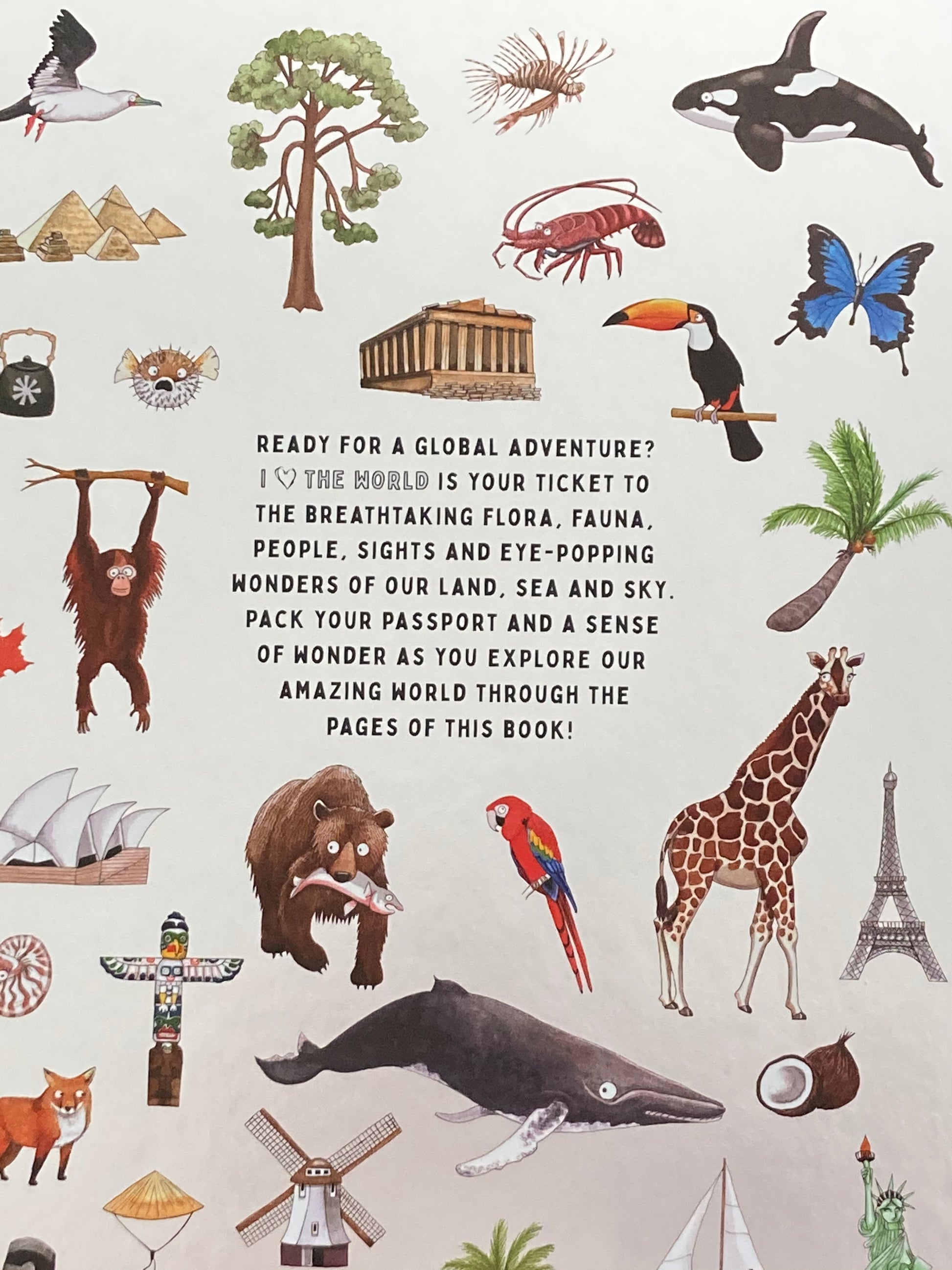 I LOVE THE WORLD will introduce you and your lucky child to the breathtaking wonders of our land, sea and sky. With a sense of wonder, you can explore our amazing world through the pages of this richly detailed book! Each page is filled with interesting facts, pictures and, questions & answers.