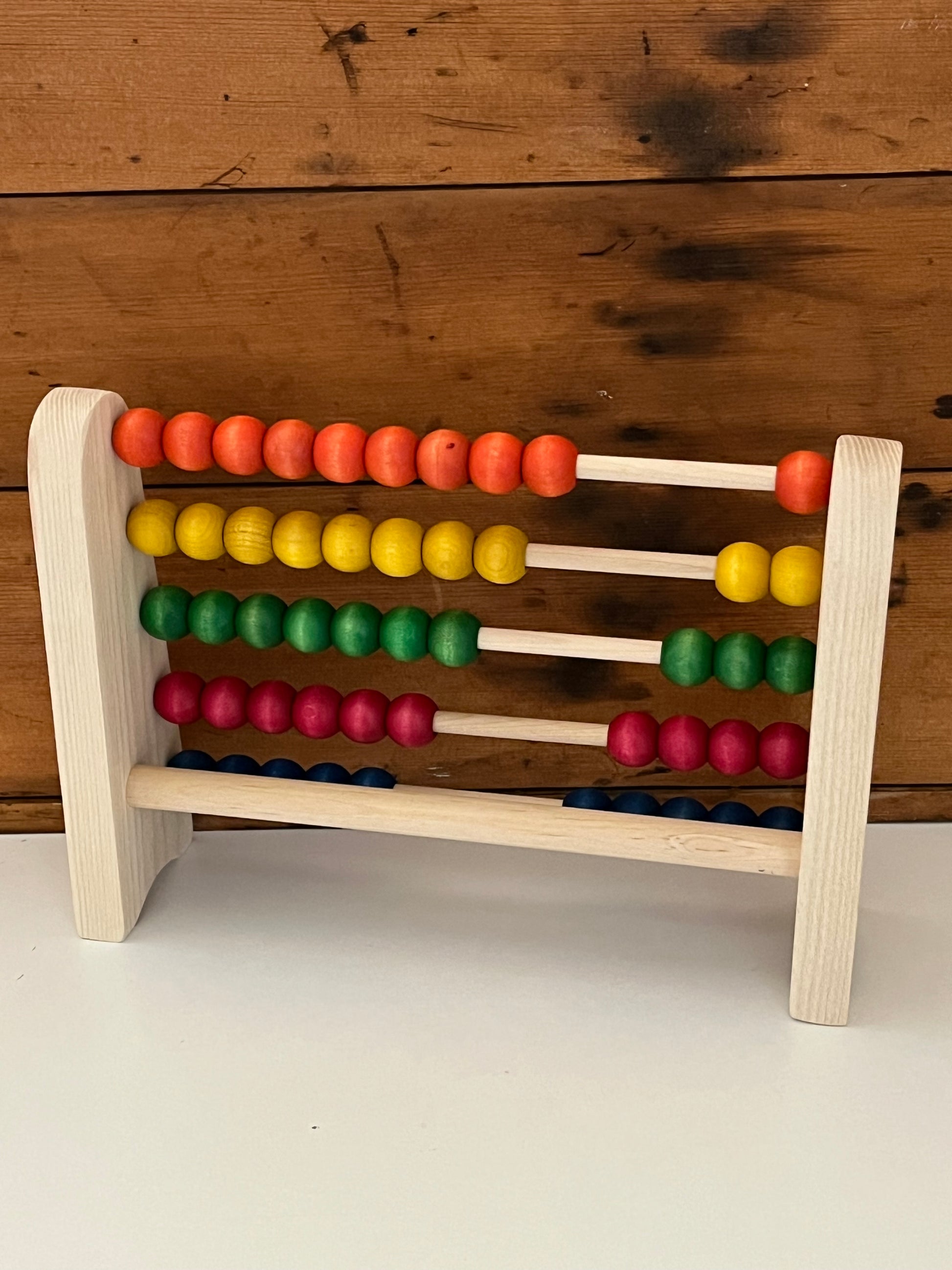 An ancient counting device to help children learn math. Solid, all wood and beautiful!