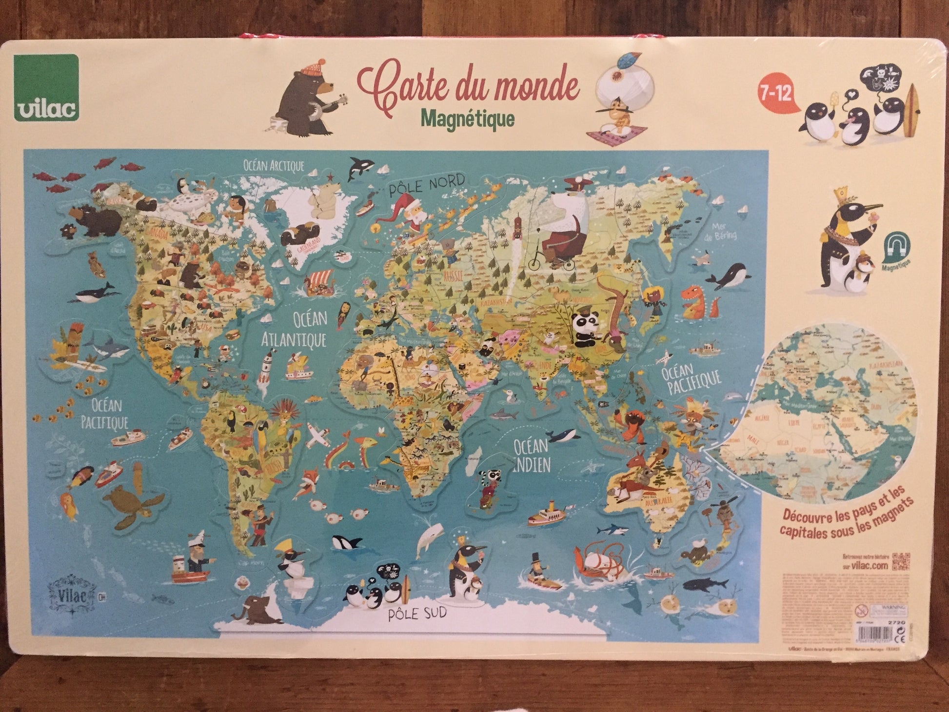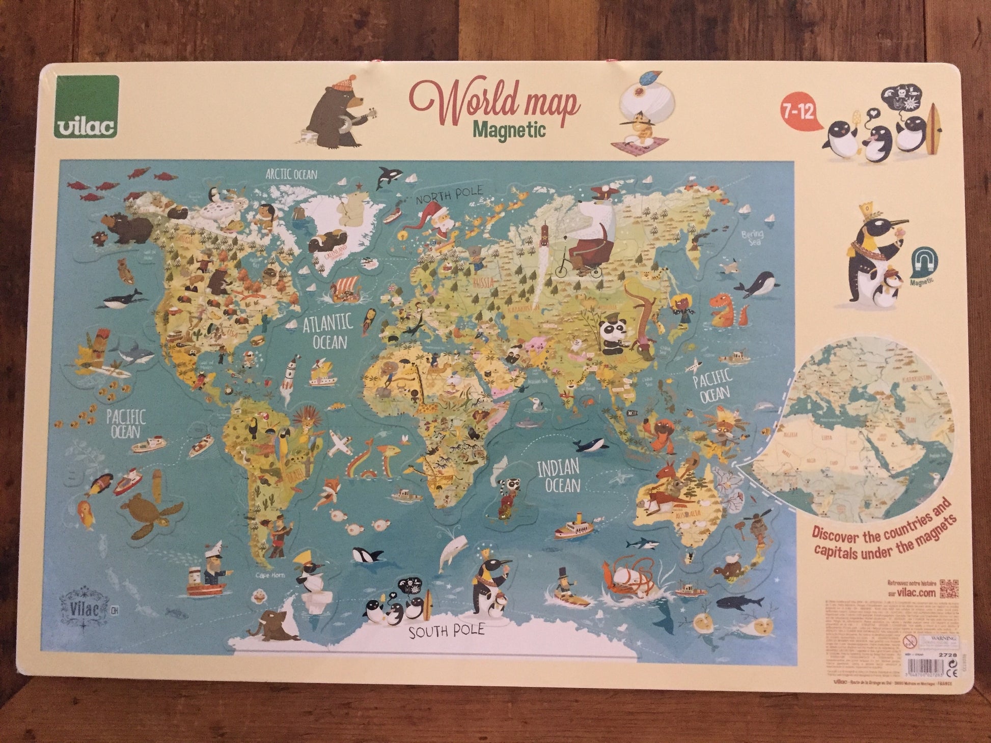 Another quality product from Vilac France, since 1911. To be hung in the Homeschool room, the Family room, the Playroom. On the other magnetic side, the pieces covering the Continents can be removed to encourage exploration and discovery. Discover the World's Countries and their Capital Cities under the magnets.