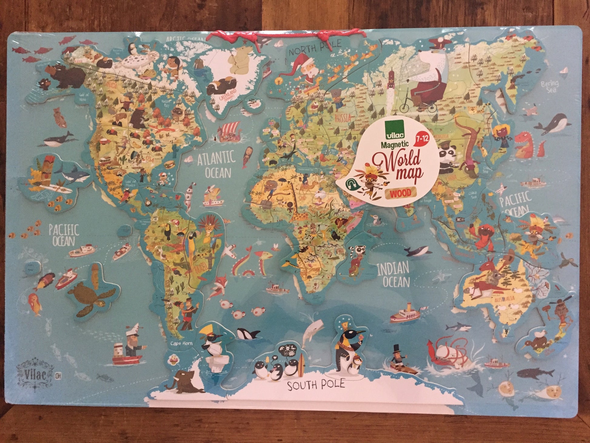 Bring the World inside with this wonderful Wooden World Map. Magnetic puzzle pieces on one side.