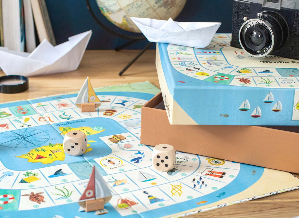 Younger children will enjoy moving the beautiful wooden boat pieces with their older partner. From 2-4players. Recommended from 5 years up. Someone will need to read the instructions if scoring the game is desired. Otherwise moving the boats around the board according to the numbers rolled on the dice will provide a simple, fun version of the game.