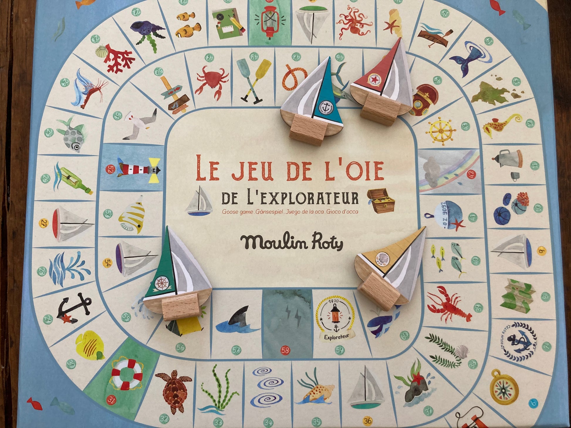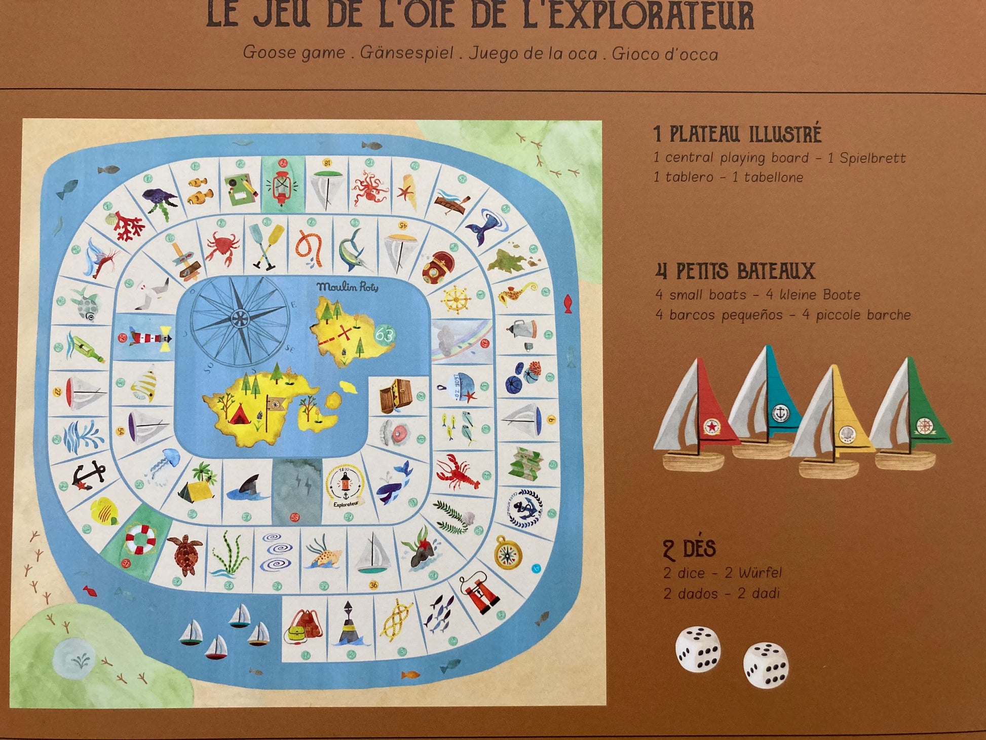 This is the classic old-fashioned GOOSE GAME, "Le JEU DE L'OIE". No one seems to know why it was called that! See all our fun Family and Educational Game Sets.