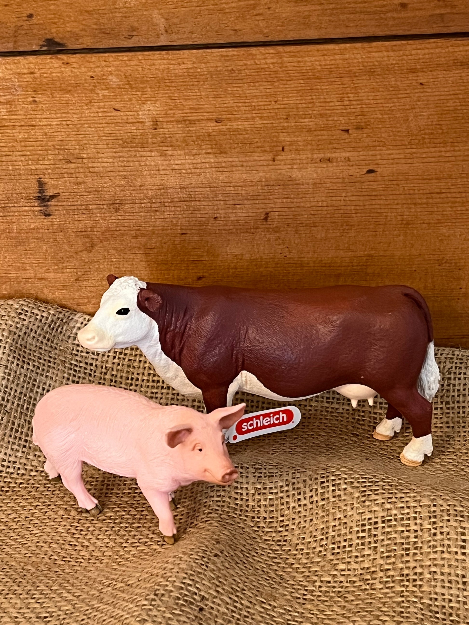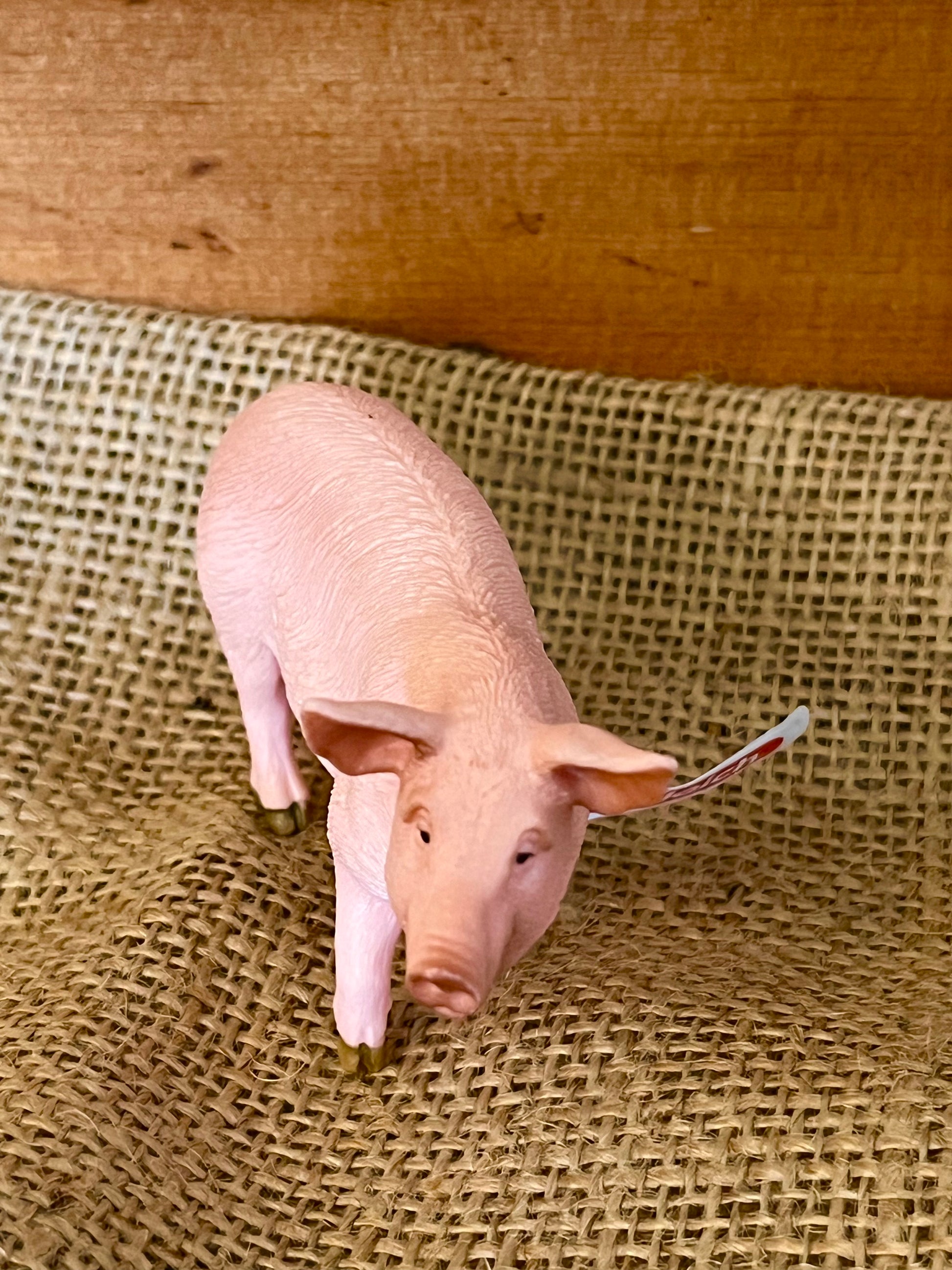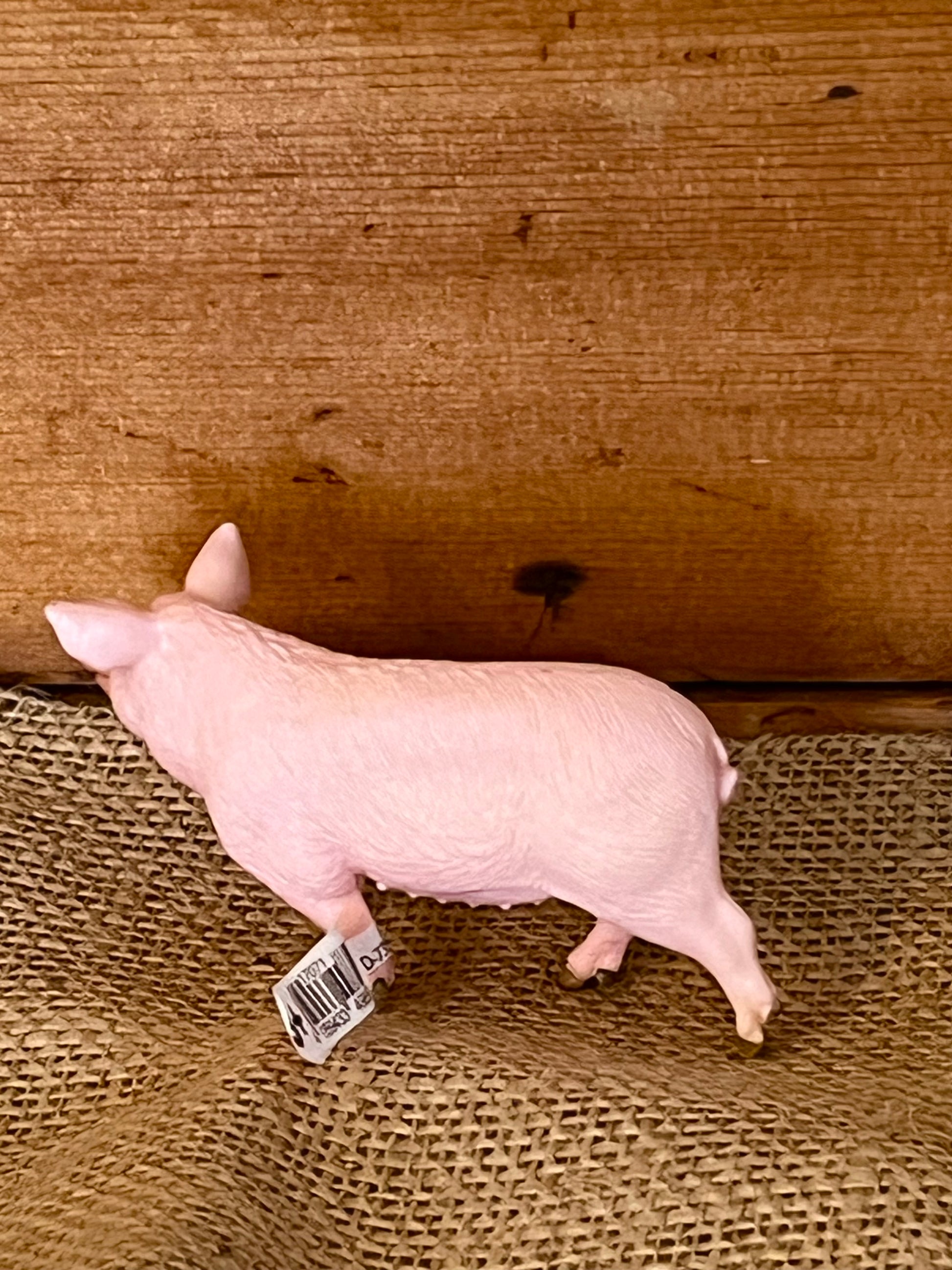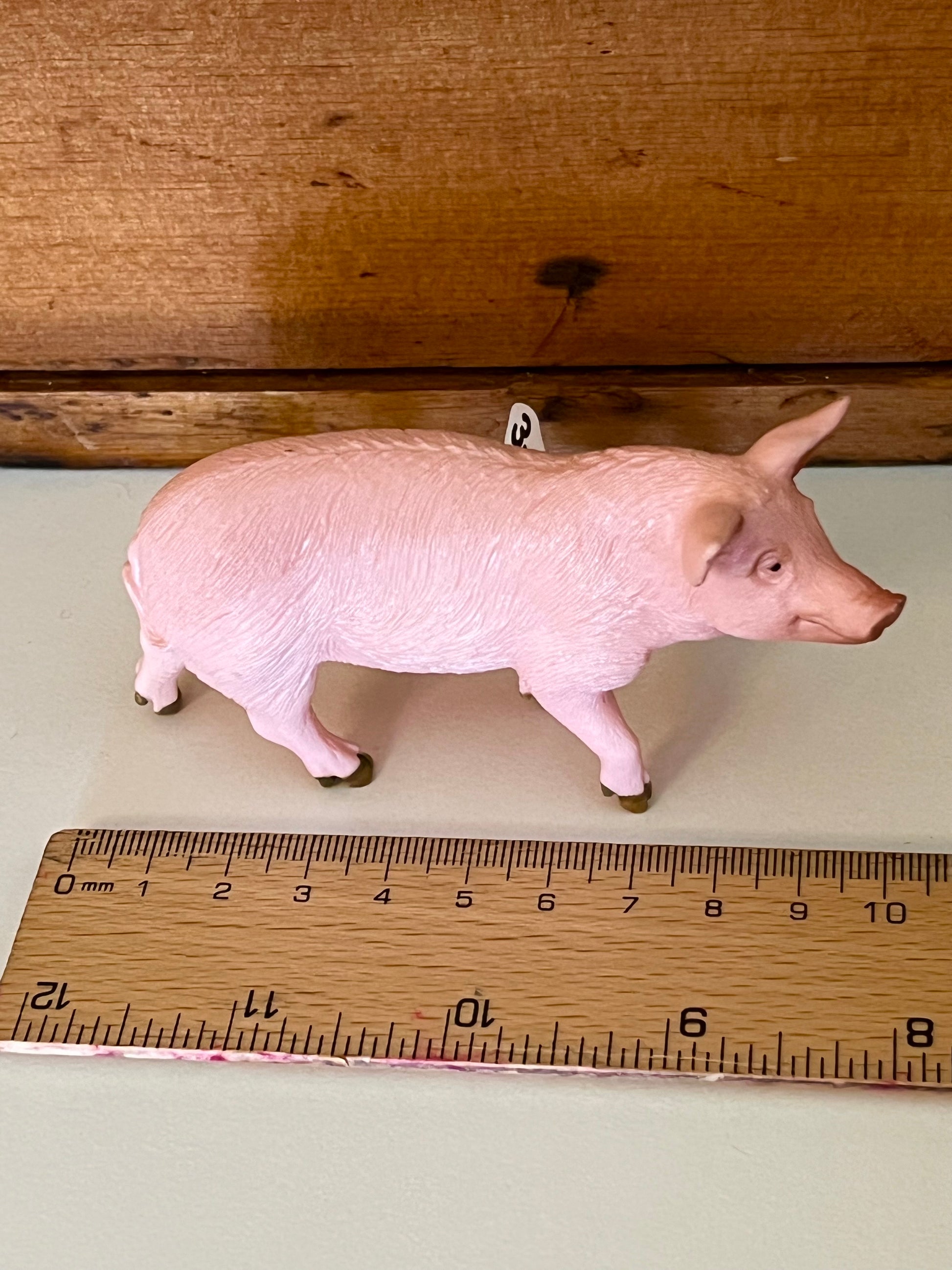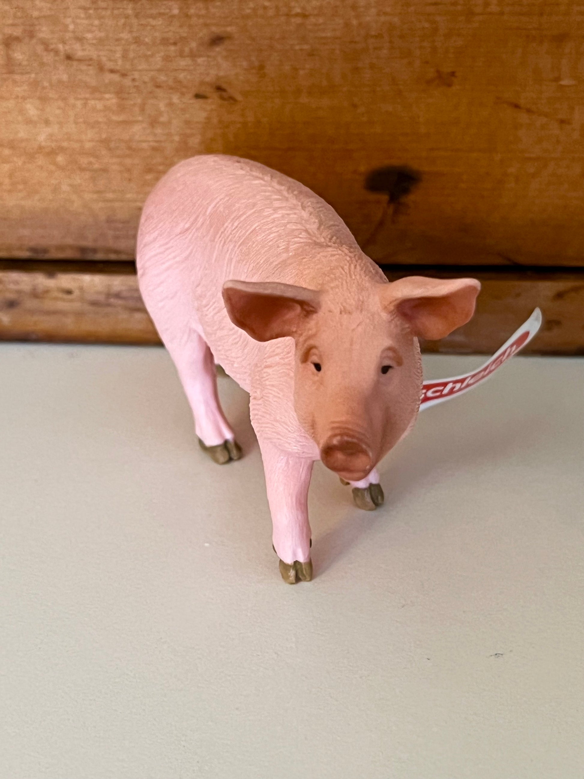 This is the Schleich PINK PIG. A big, beautiful, pink pig. Every farm needs at least one! Give them a nice big pen, and Pigs will use one corner for their "bathroom", and keep their sleeping nest very clean! All Pigs love a good scratching along their backs.