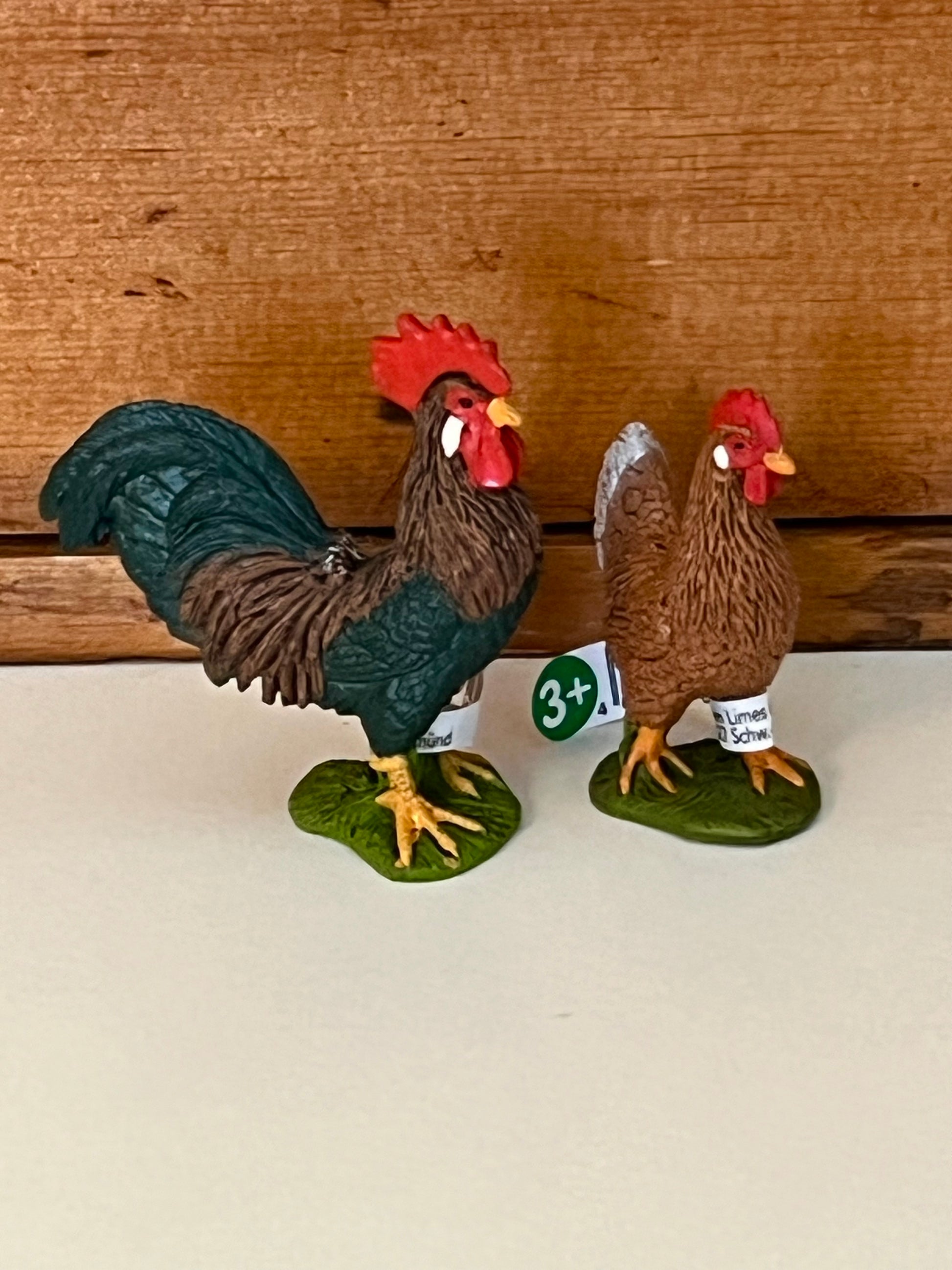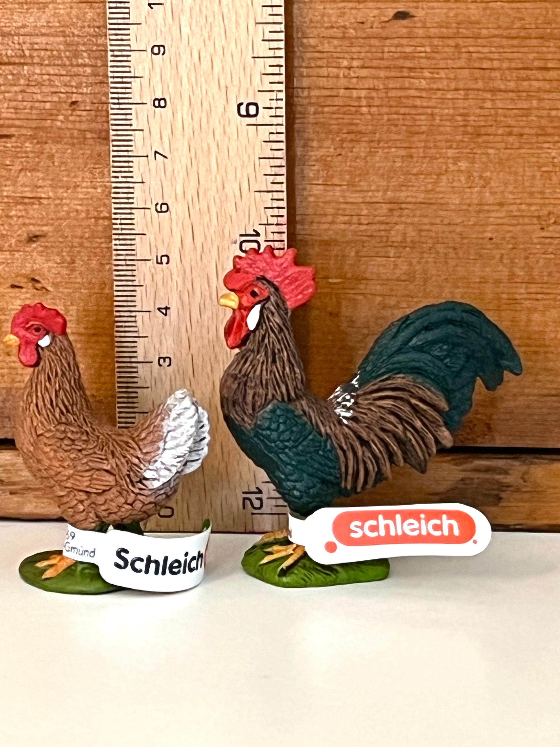 Please choose from two Schleich Welsummer Chickens. The Schleich ROOSTER is a colourful fellow with his bright red comb and beautiful tail feathers. Every farm has a crowing Rooster to wake them up at dawn of day! The Schleich HEN also has a beautiful red comb and lays bountiful, brown-shelled eggs!