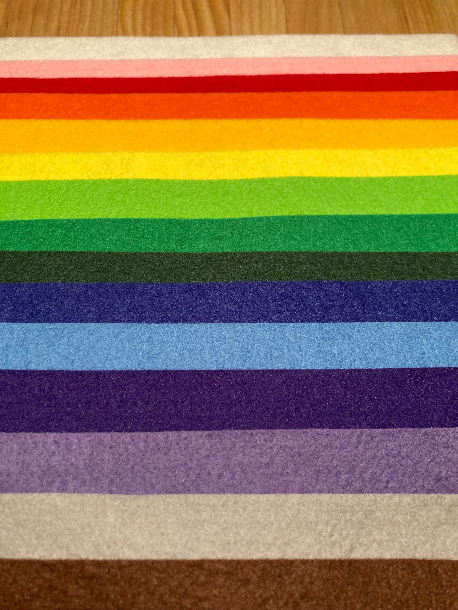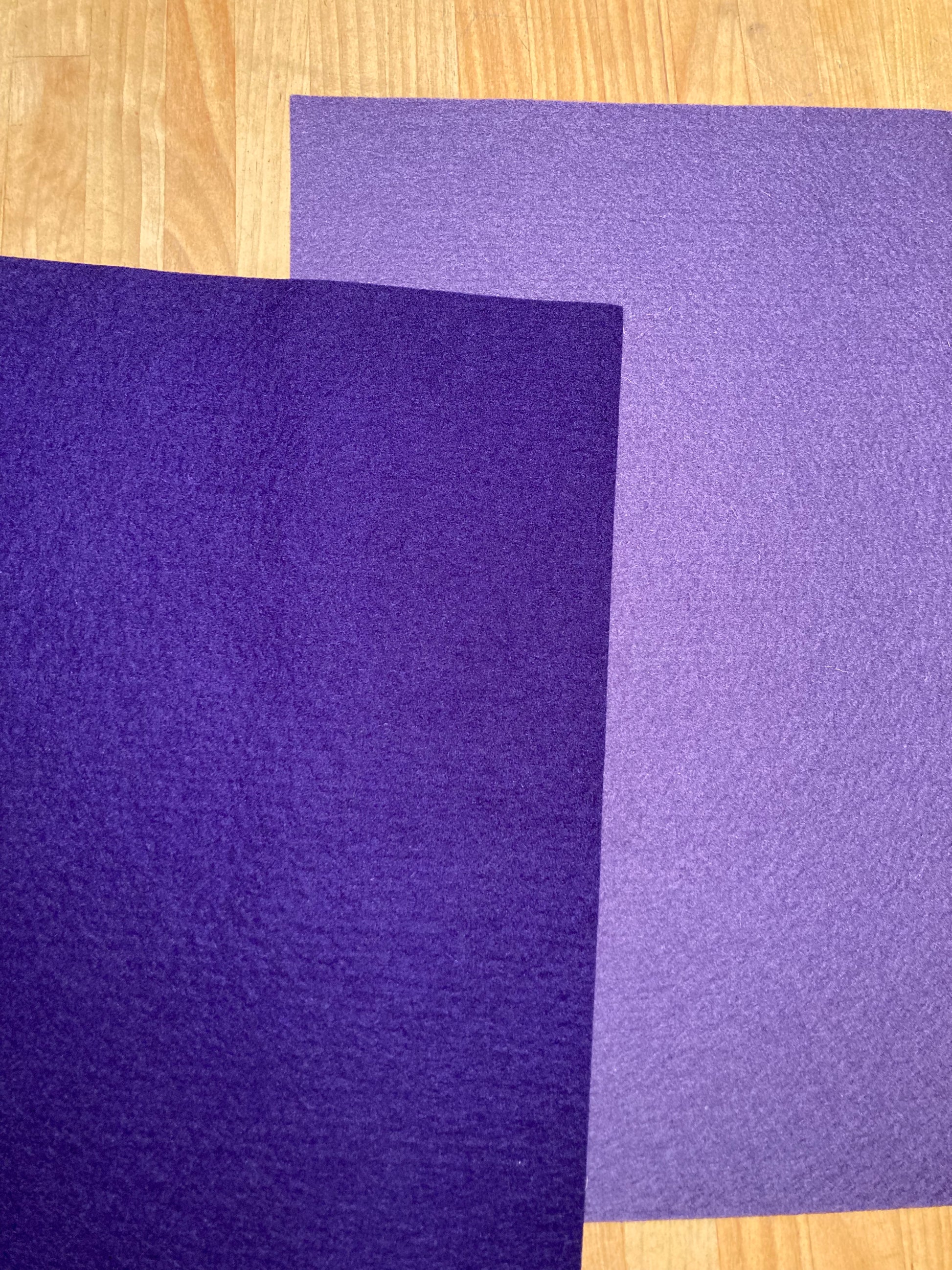 100% Sheep WOOL FELT SHEETS are available in the 15 colours as shown in photo: WHITE, PINK, RED, ORANGE, GOLD YELLOW, LEMON YELLOW, LIGHT GREEN, GREEN, DARK GREEN, ULTRAMARINE-NAVY BLUE, LIGHT BLUE, BLUE-VIOLET, LIGHT PURPLE, GREY, and BROWN.