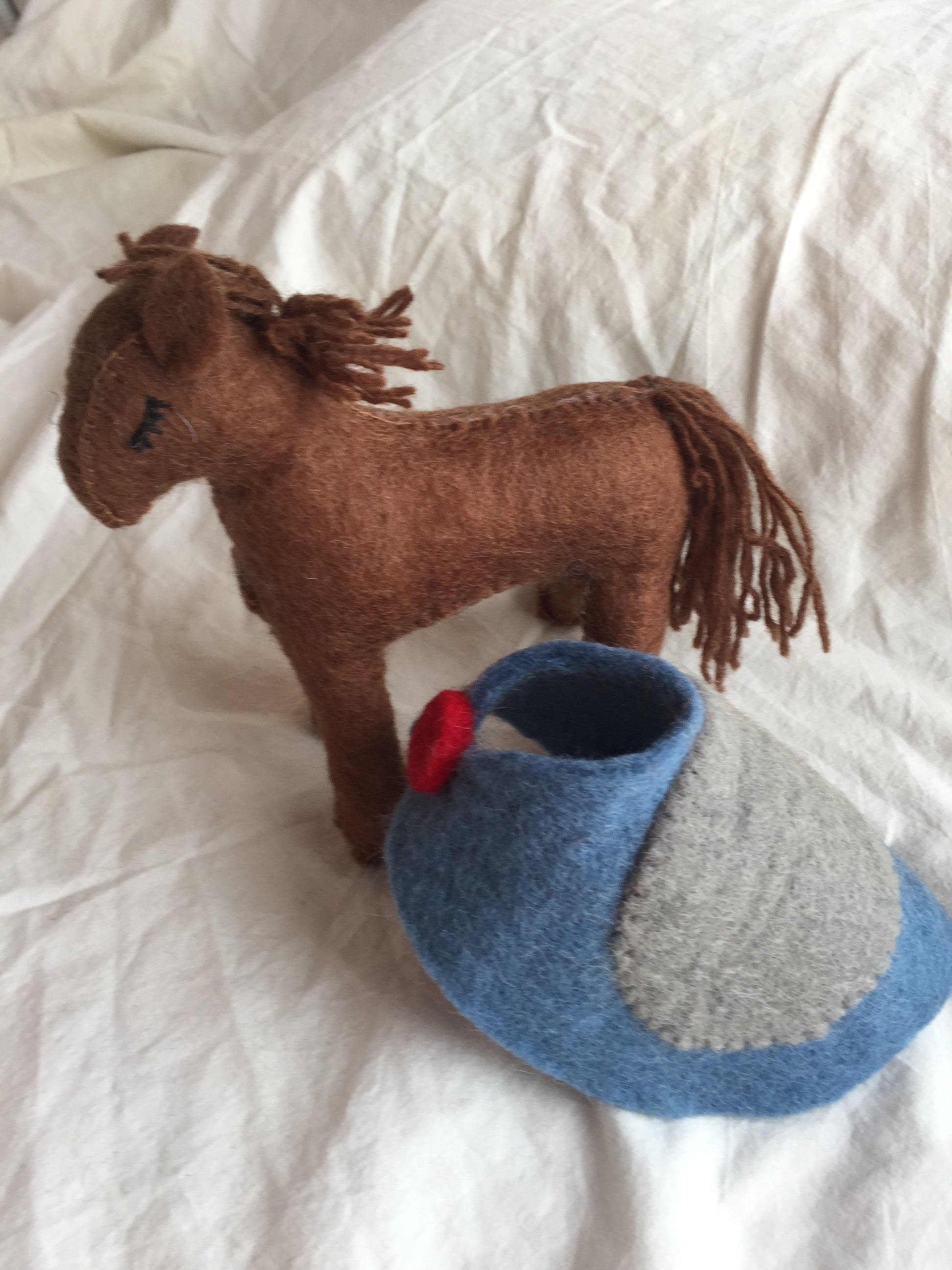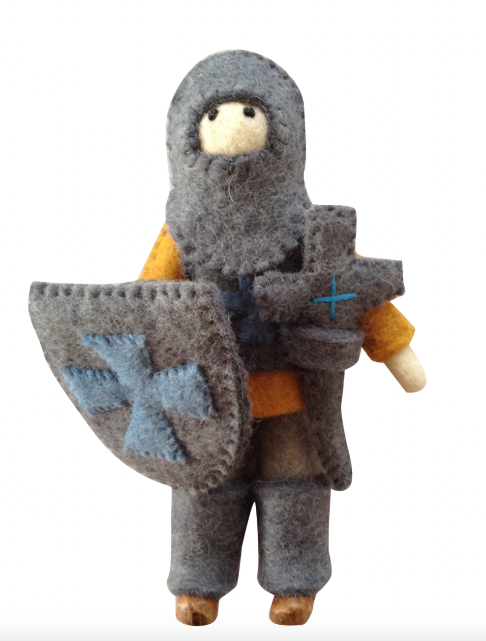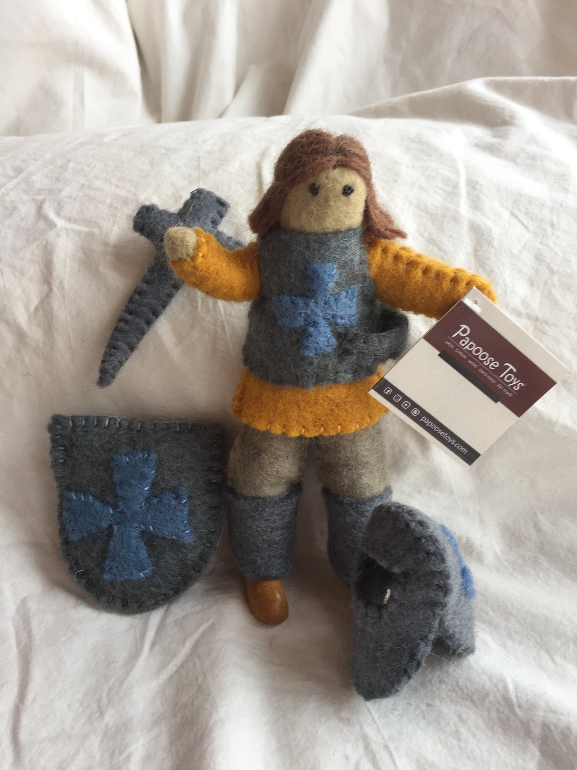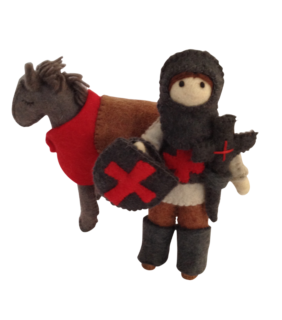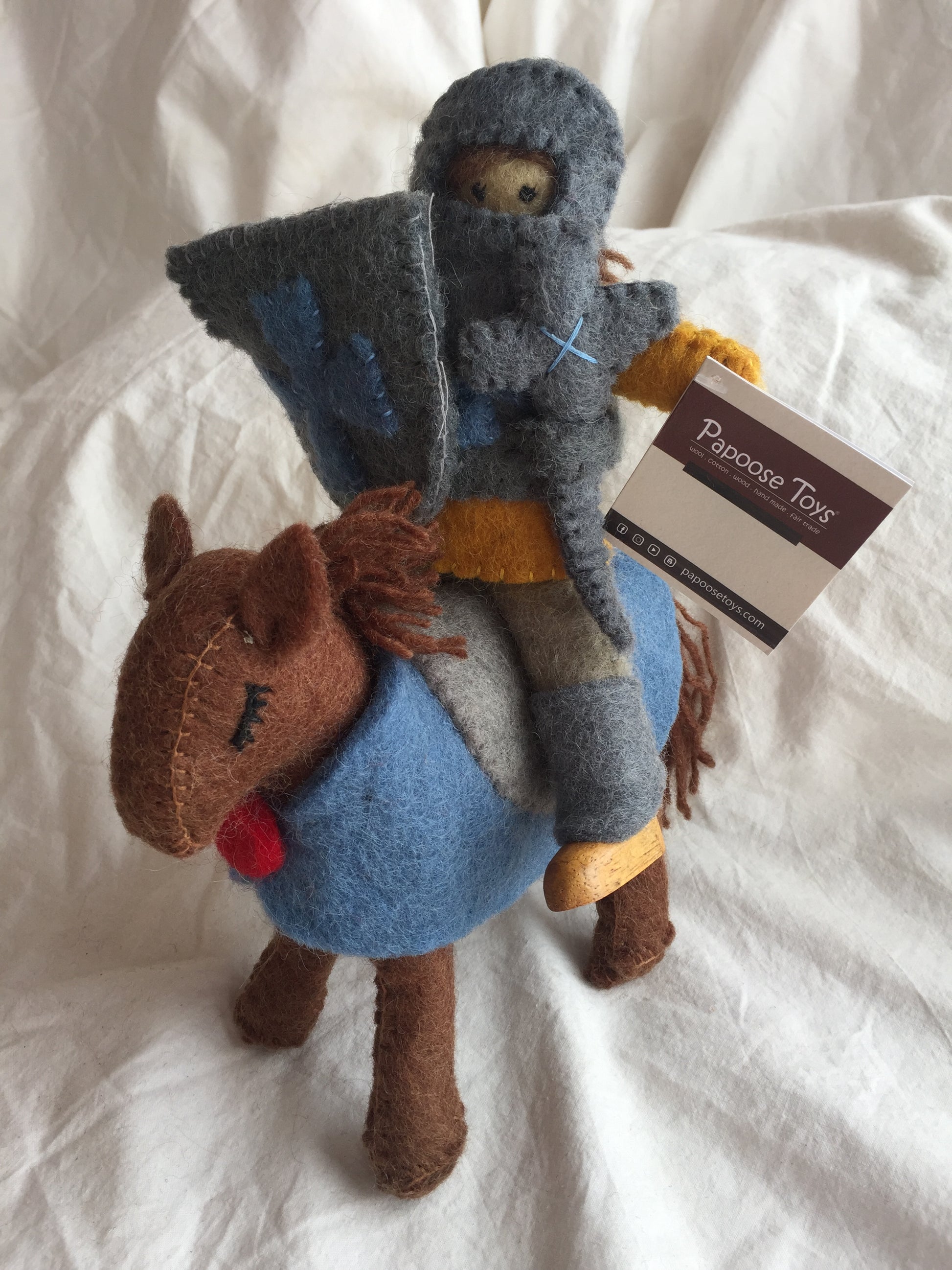 The Medieval Knight and his faithful Horse. Another quality Felted toy by Papoose, from a Woman's Cooperative in Nepal. Incredible attention to detail. All armour is removable. Knight measures about 10inches tall. Both Knight and Horse will stand alone. Wooden Castle pieces sold separately. Imaginative Play and so much Fun! Guaranteed!