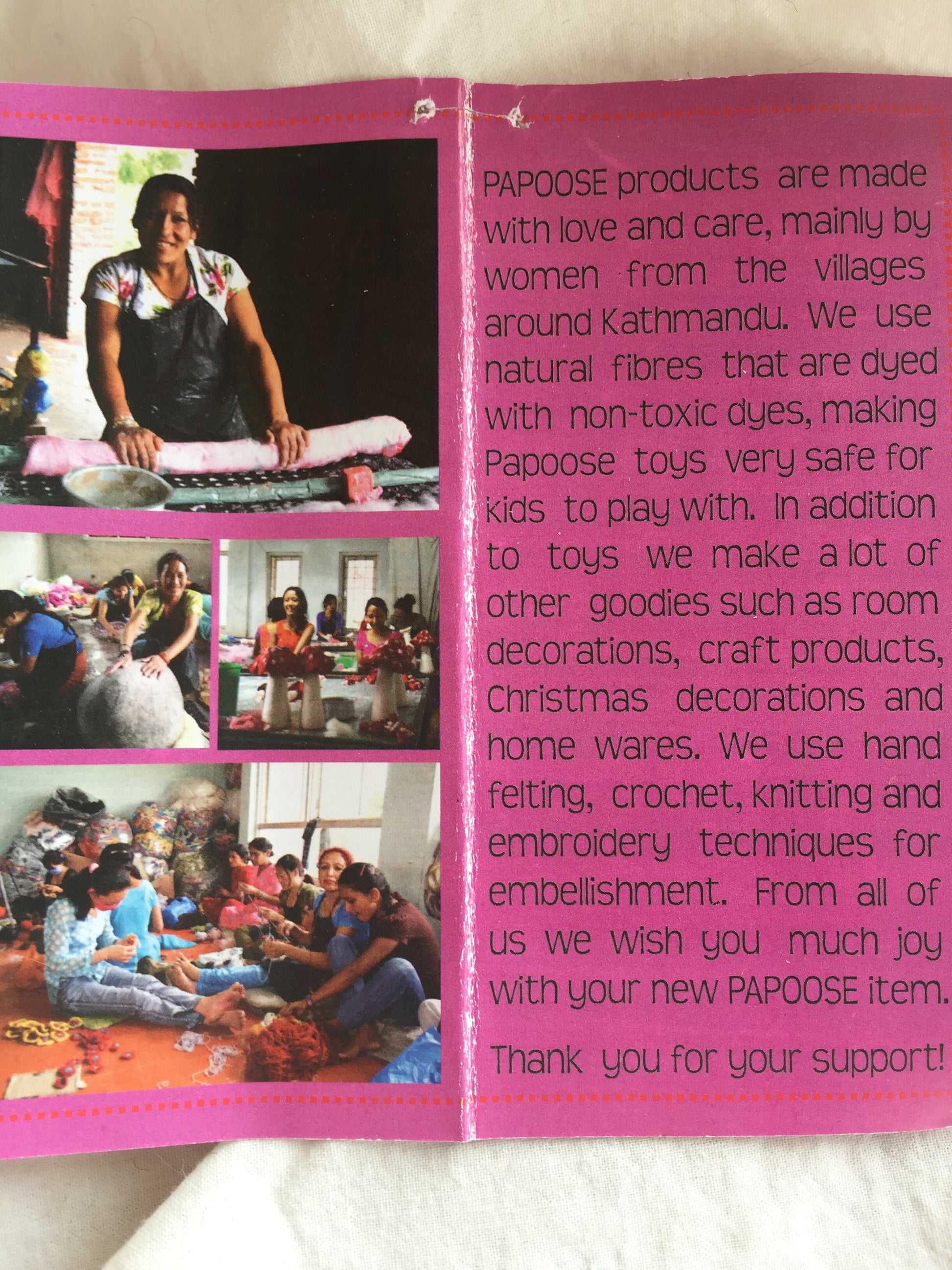 Papoose Toys: Wool. Cotton. Wood. Hand made. Fair Trade. View all felted Papoose Toys.