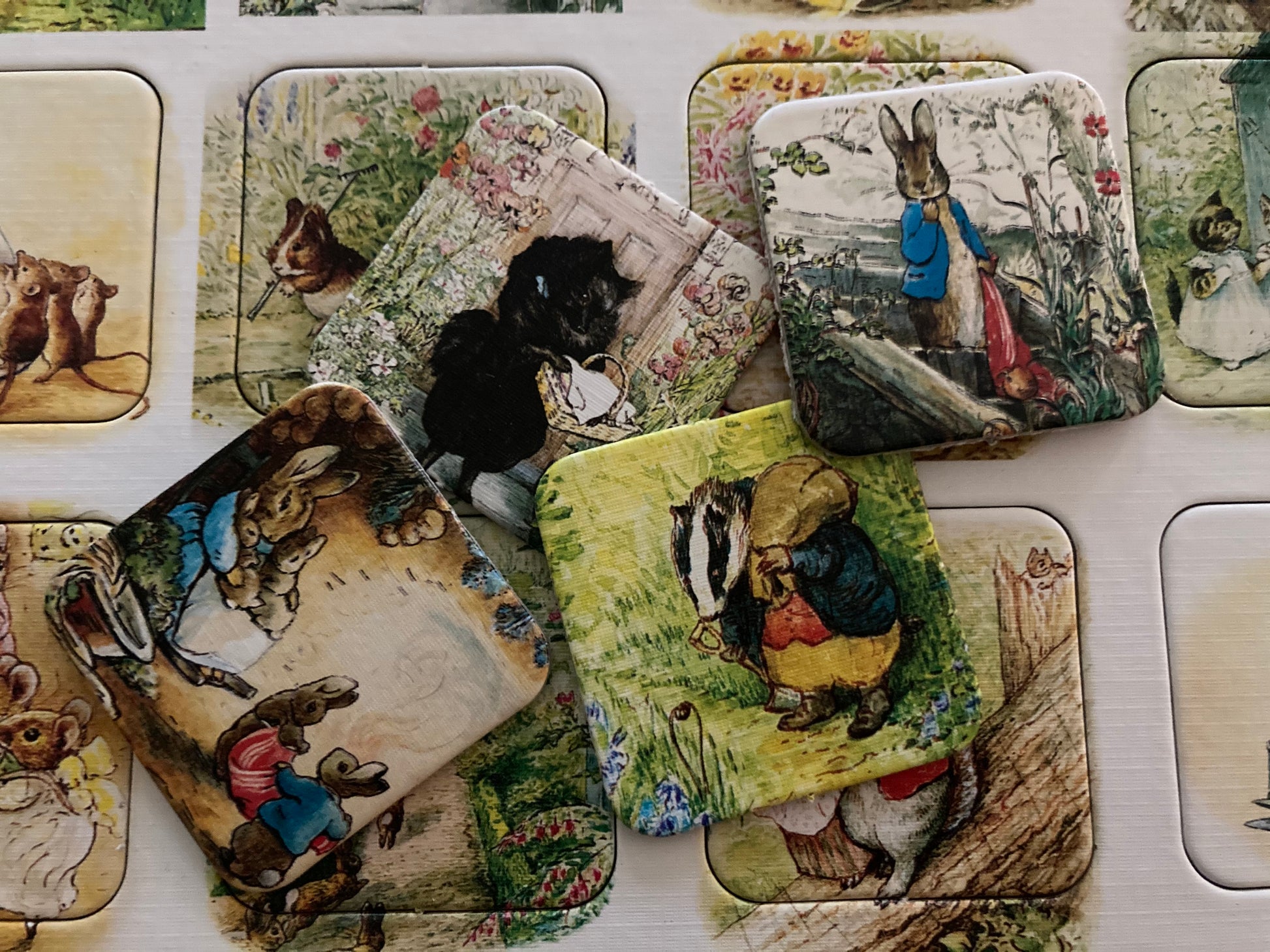 Classic scenes grace Beatrix Potter's PETER RABBIT MEMORY Matching Game.