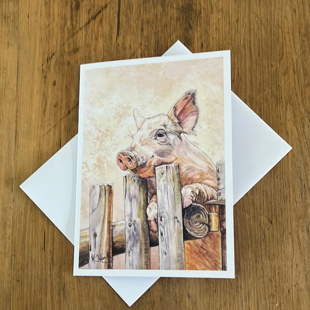This is her painting HAPPY PIGLET. See all her lovely Art from the Heart greeting cards. Sold separately.