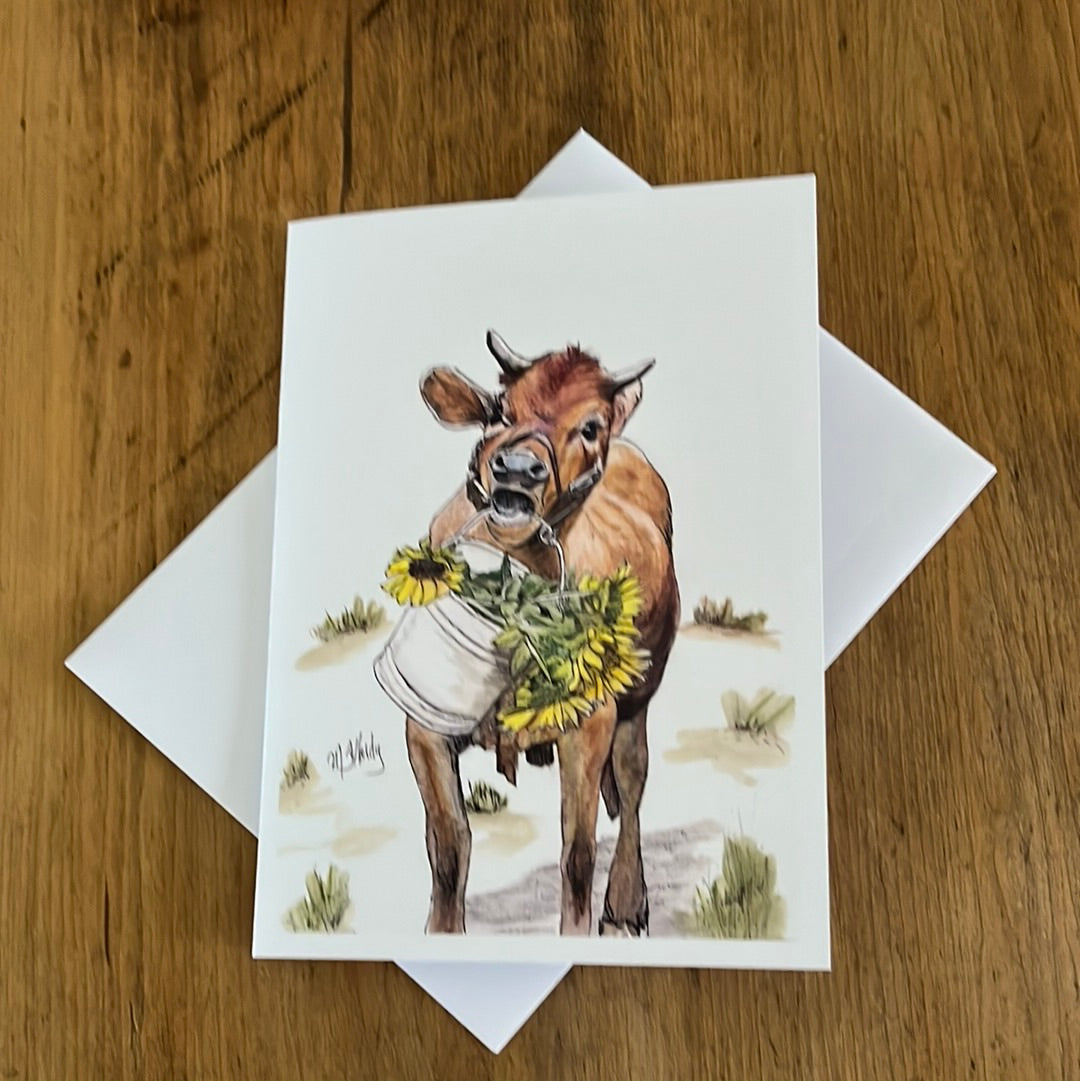Greeting Card - Art from the Heart JERSEY COW & SUNFLOWERS