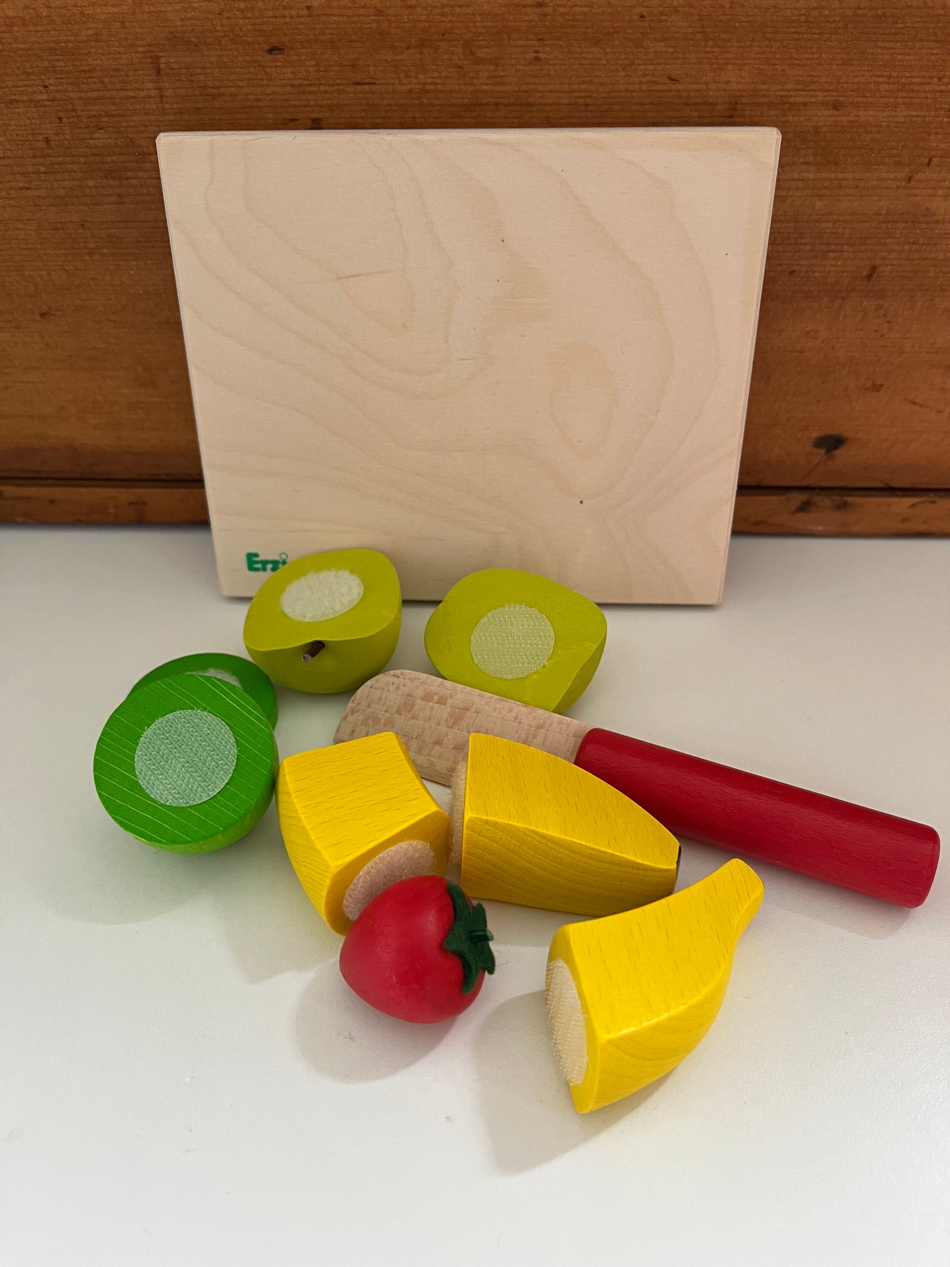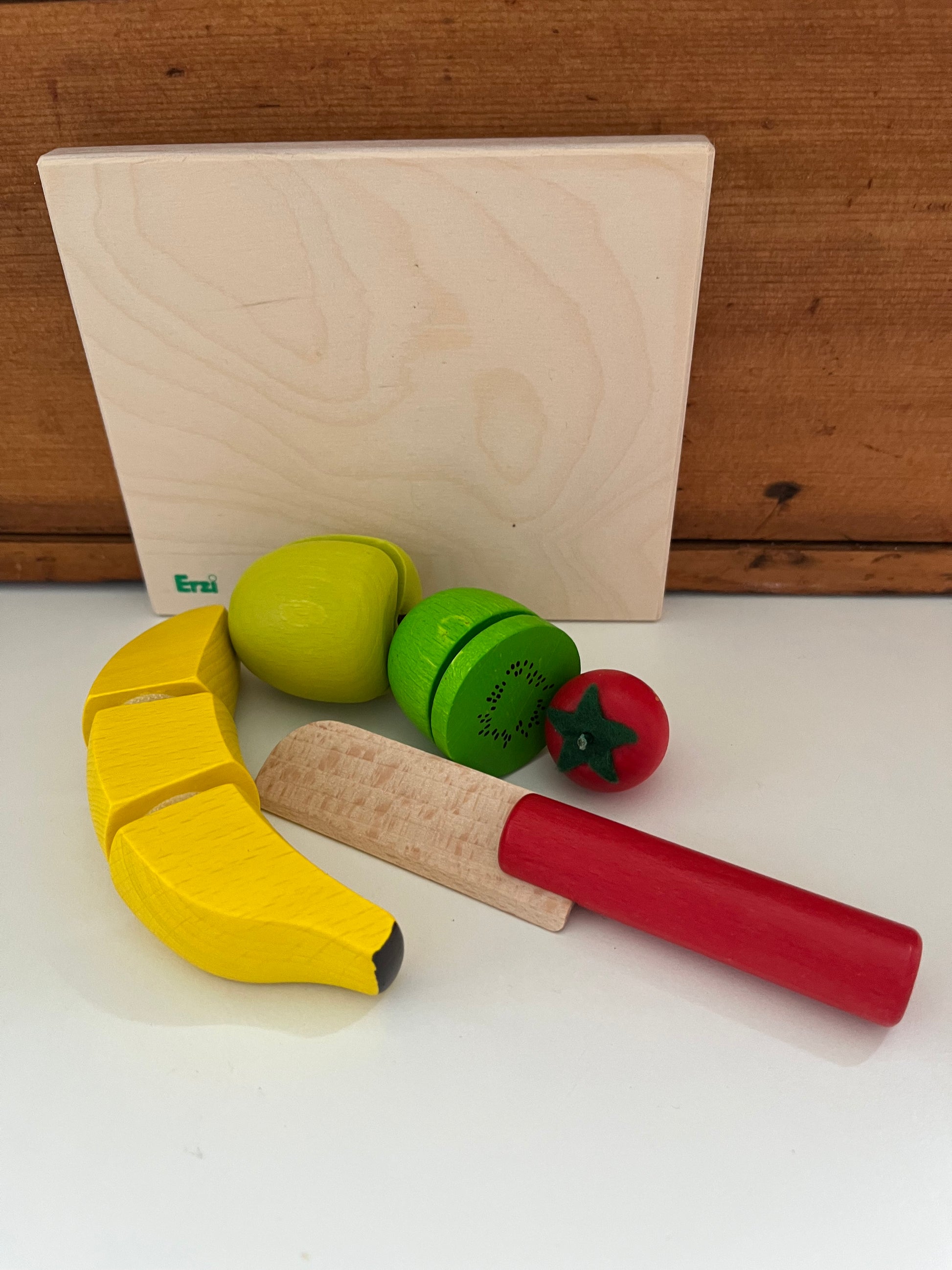 Kitchen Play Food - Wooden FRUIT-To-SLICE Set, with KNIFE & BOARD... 4 fruits!