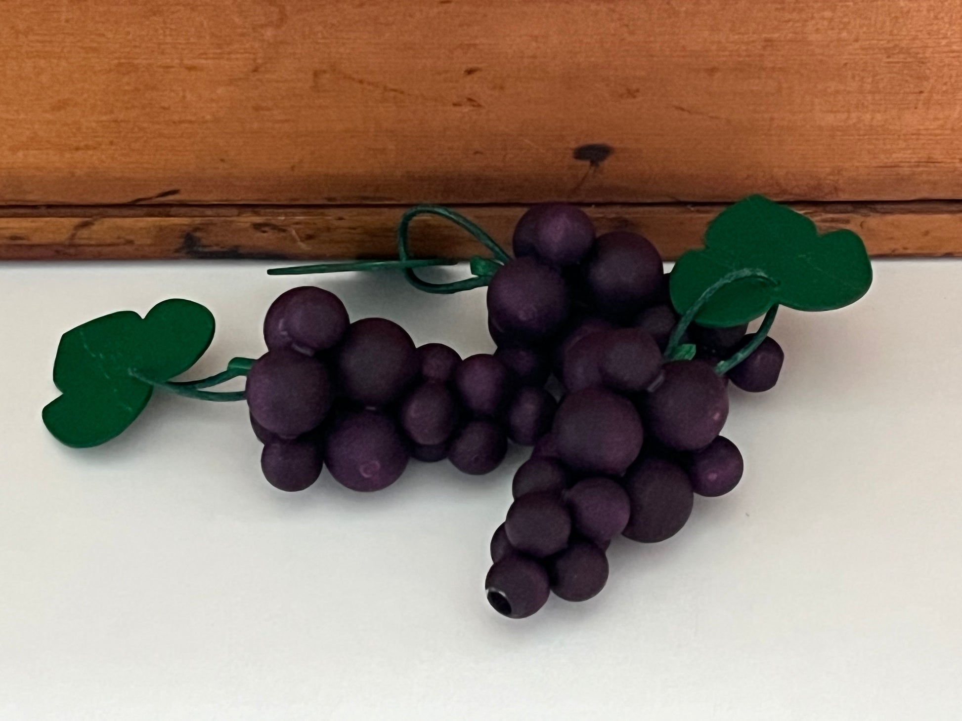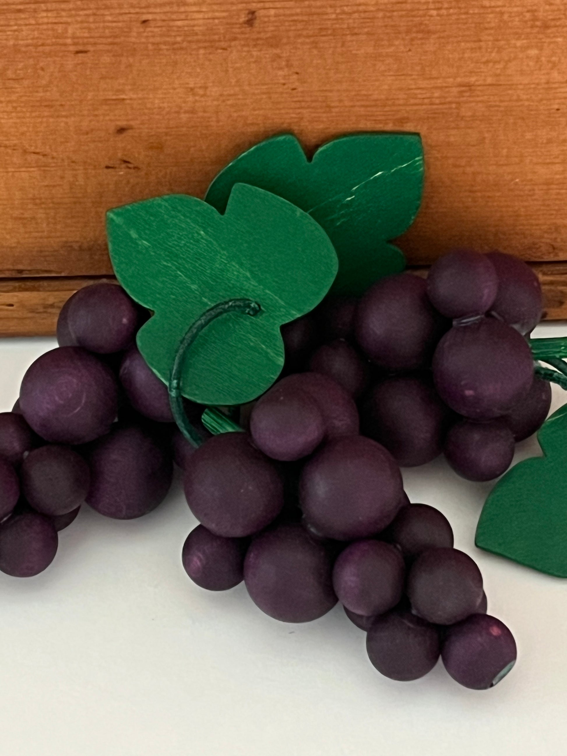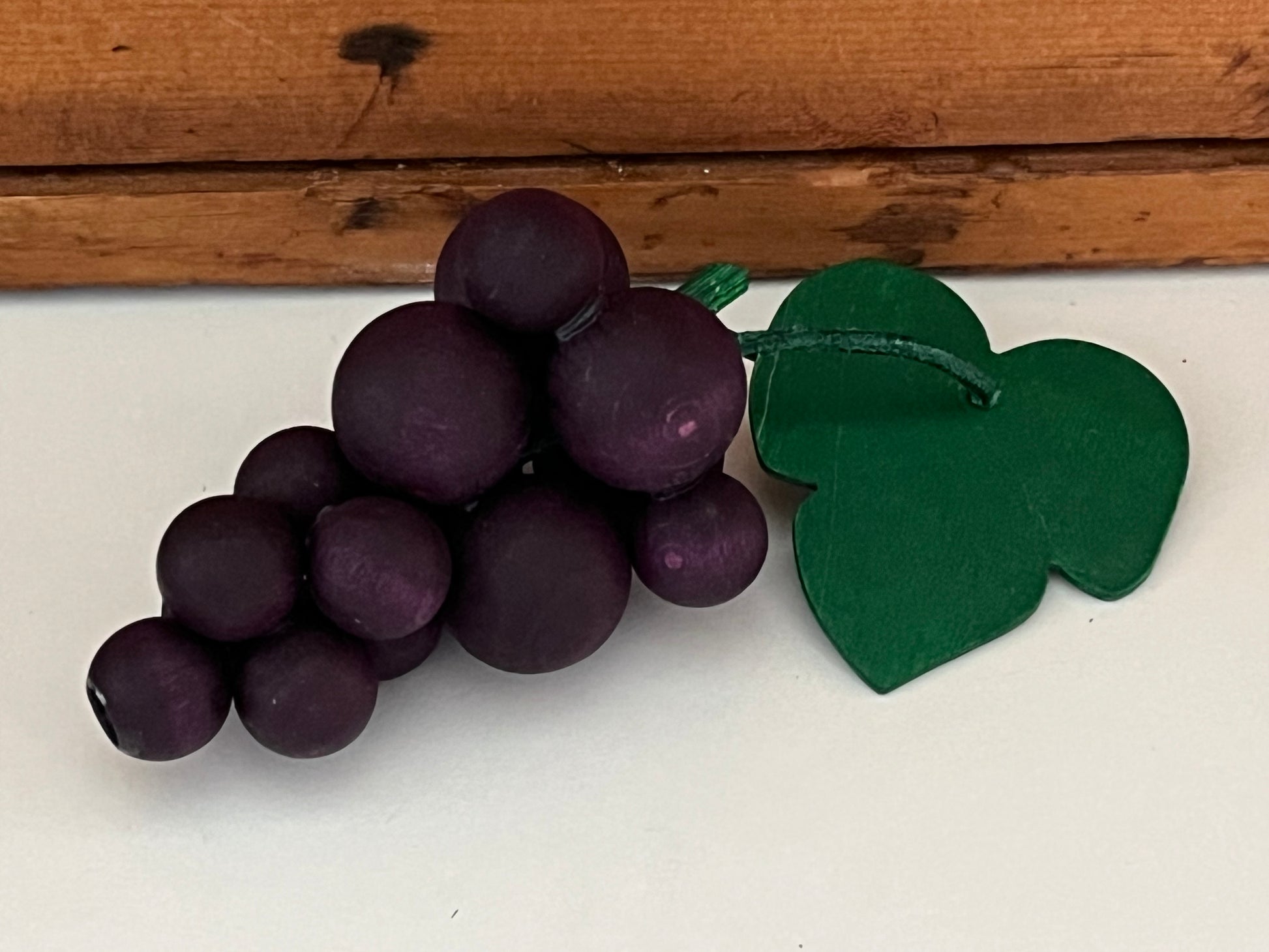 Wooden PURPLE GRAPES with a wooden green leaf attached to each bunch.