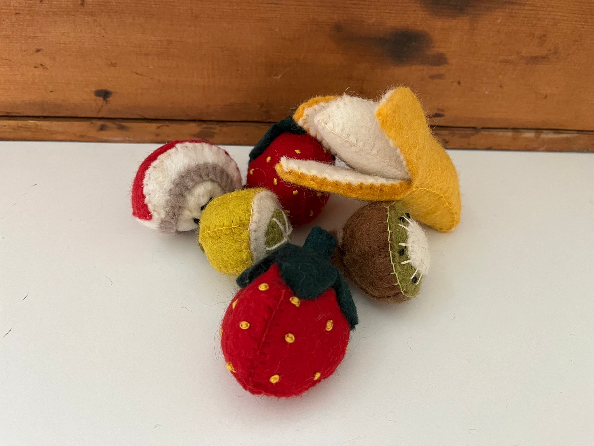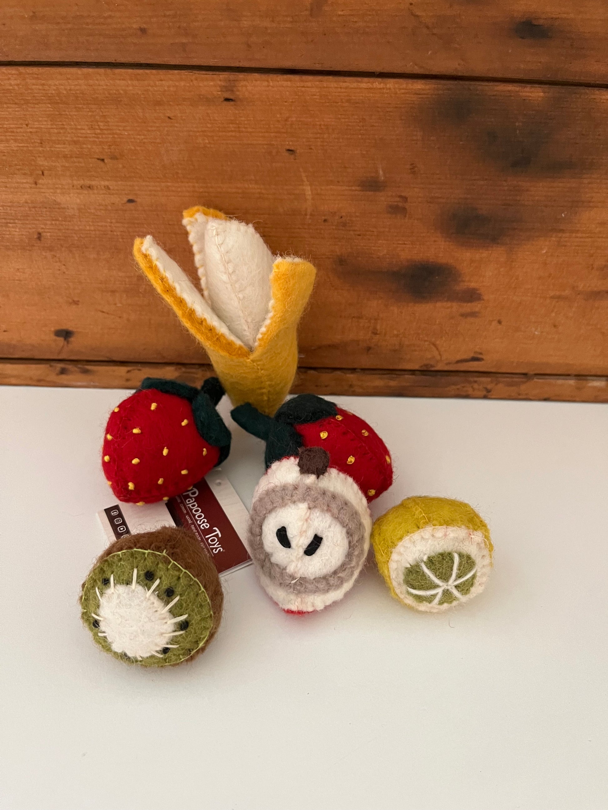 From Papoose Toys, this is their SMALL FRUIT SET of 6 wool fruits: