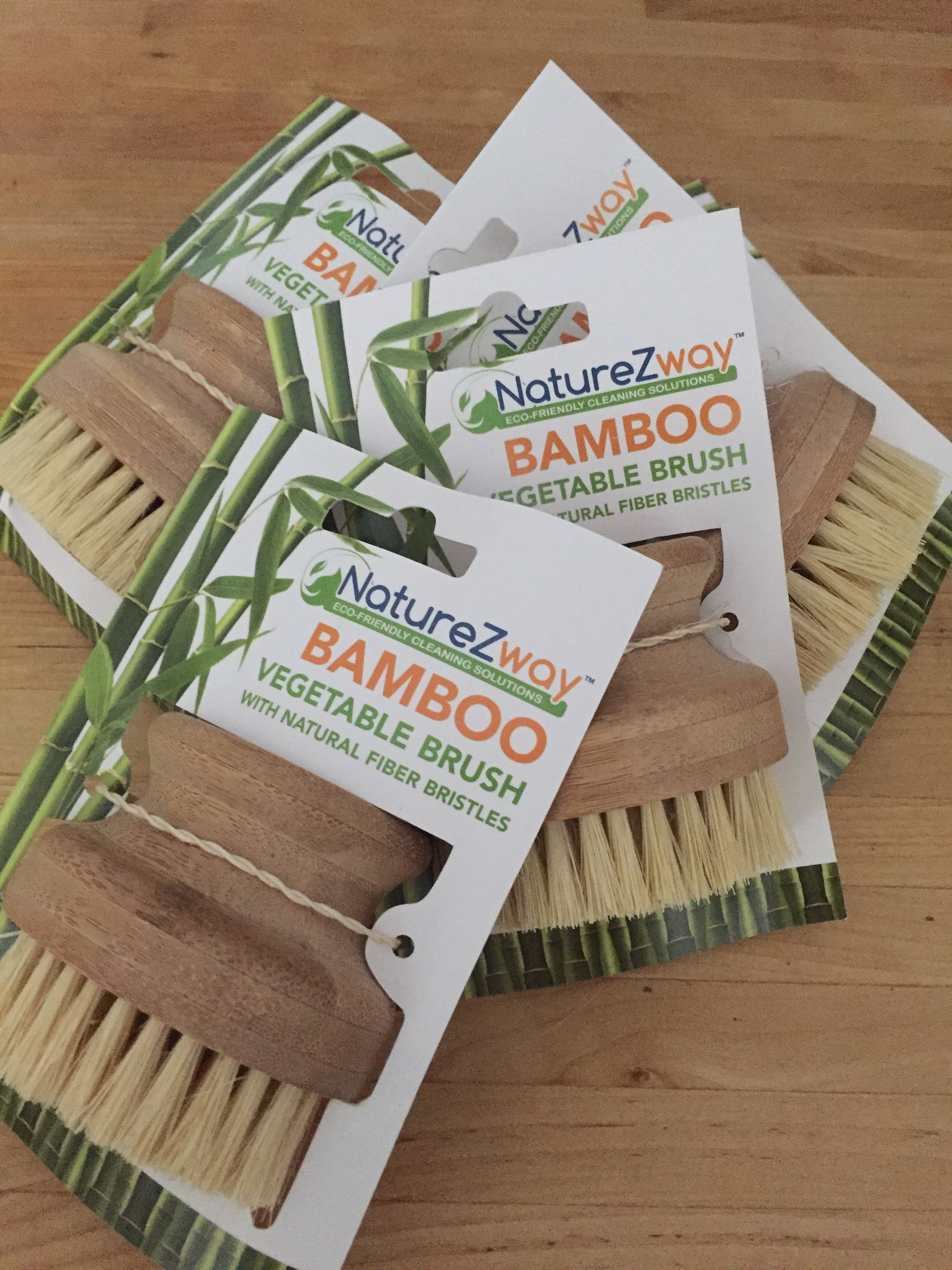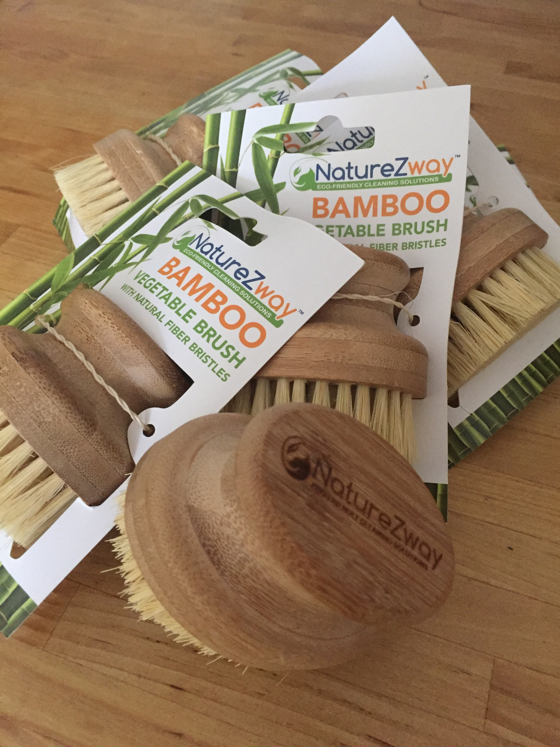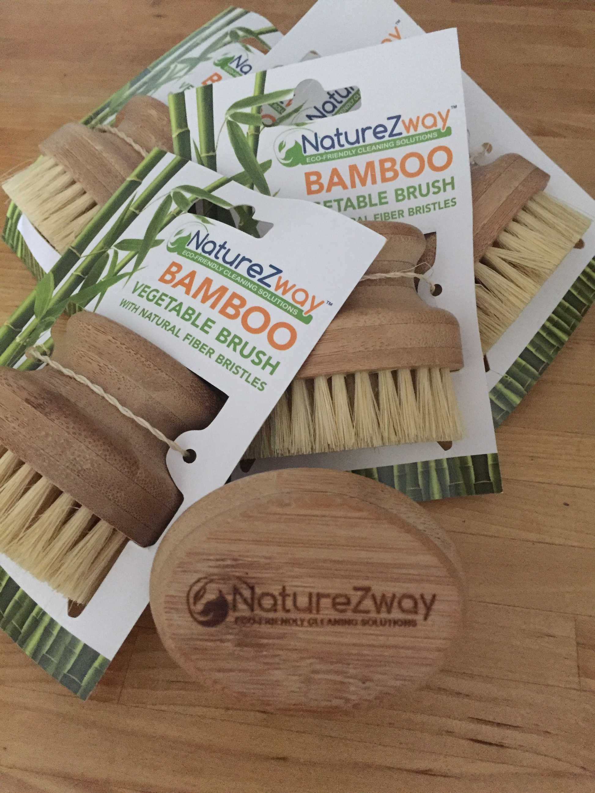 Bamboo KITCHEN VEGETABLE BRUSH, with brushing Bristles made from the Tampico plant. Completely Home Compostable. Another Eco-friendly cleaning solution from NatureZway.