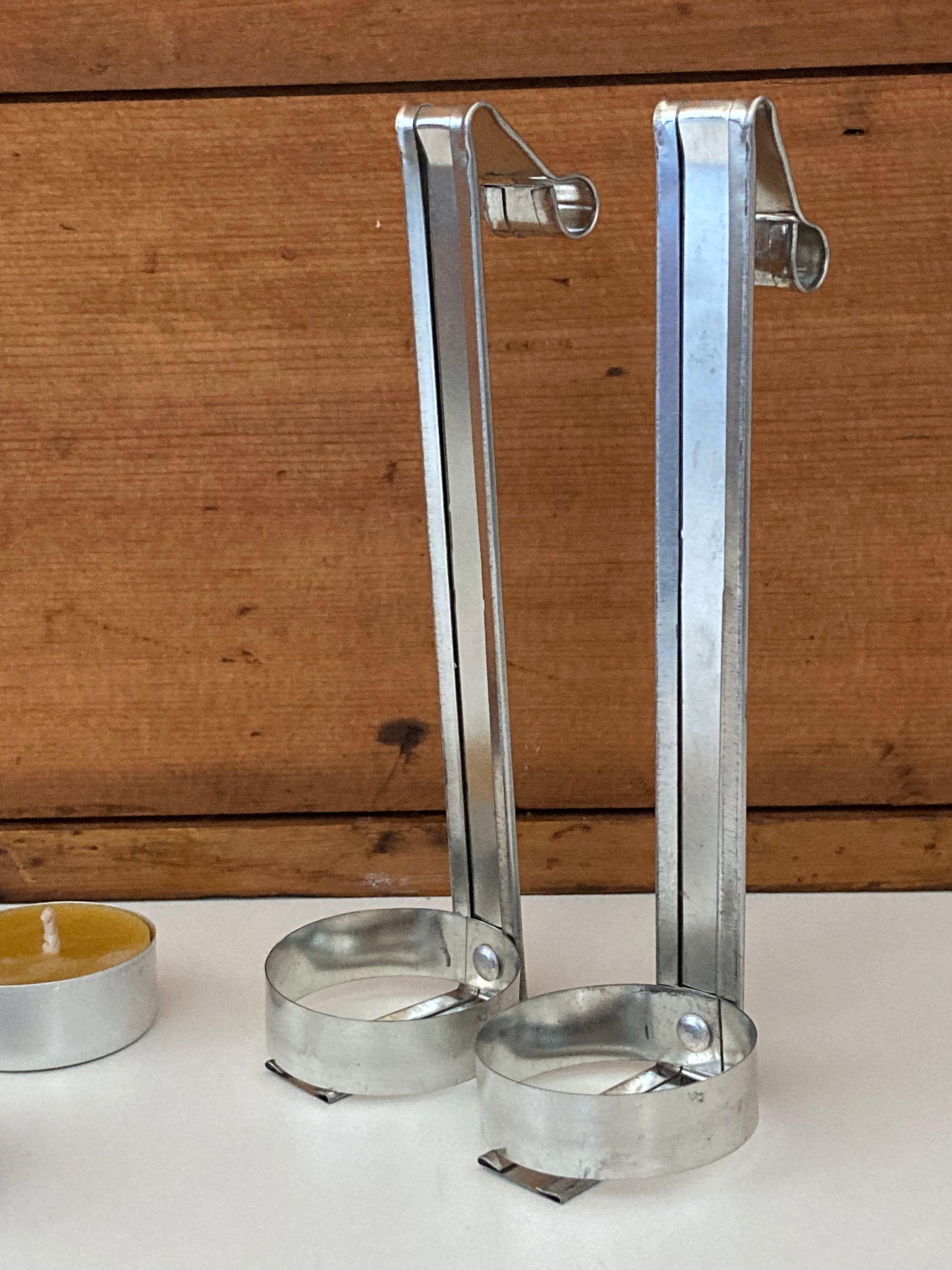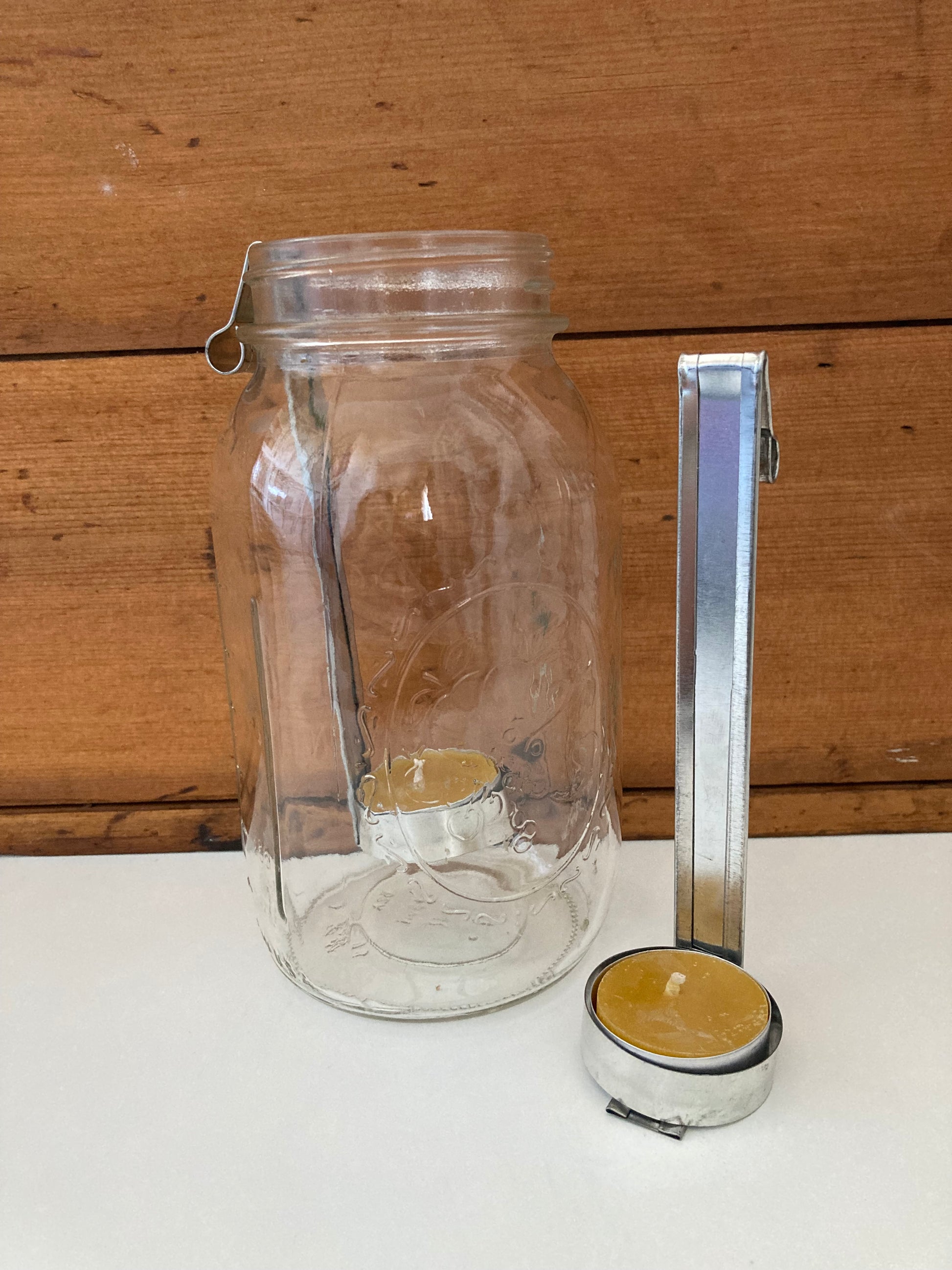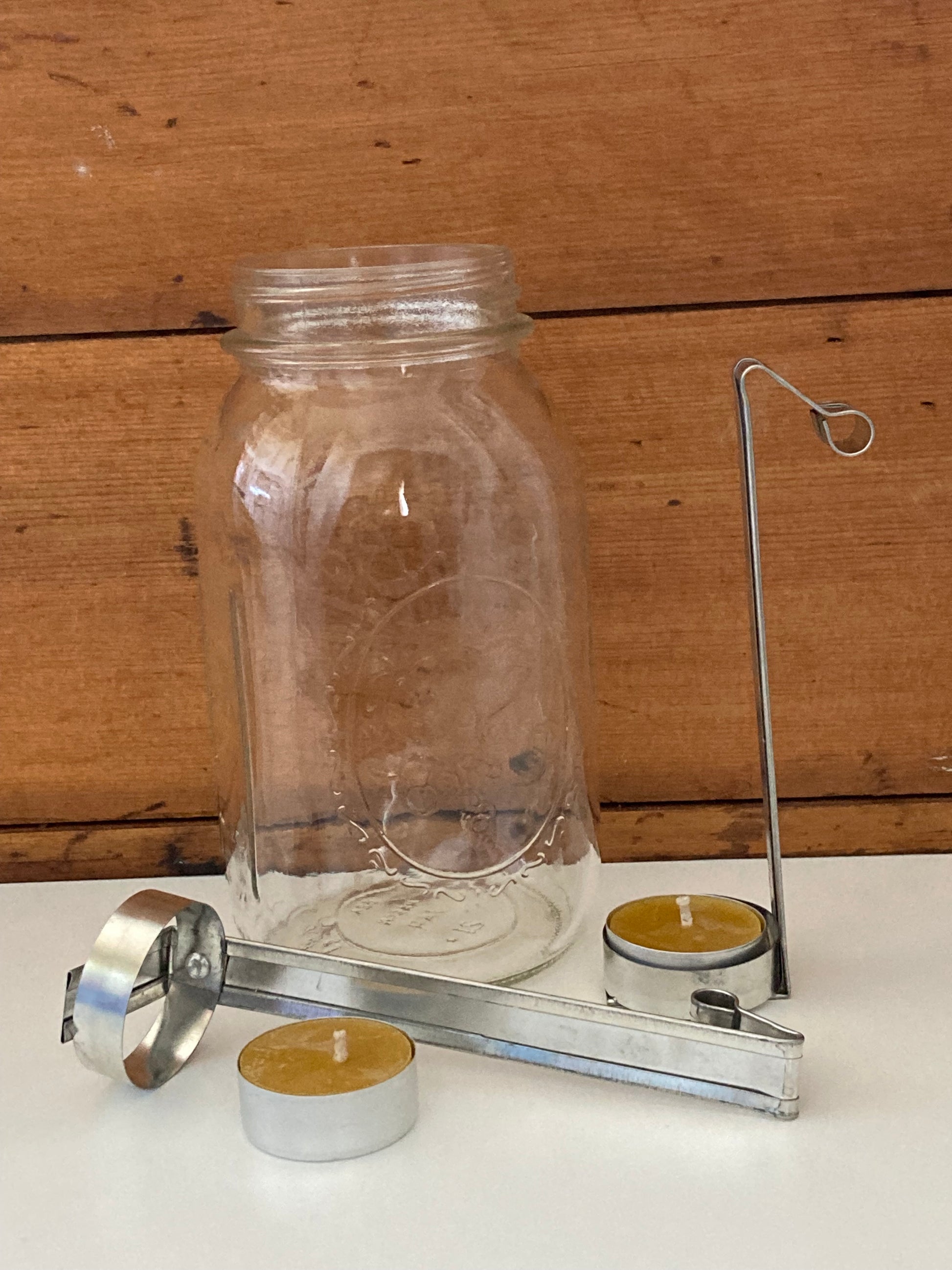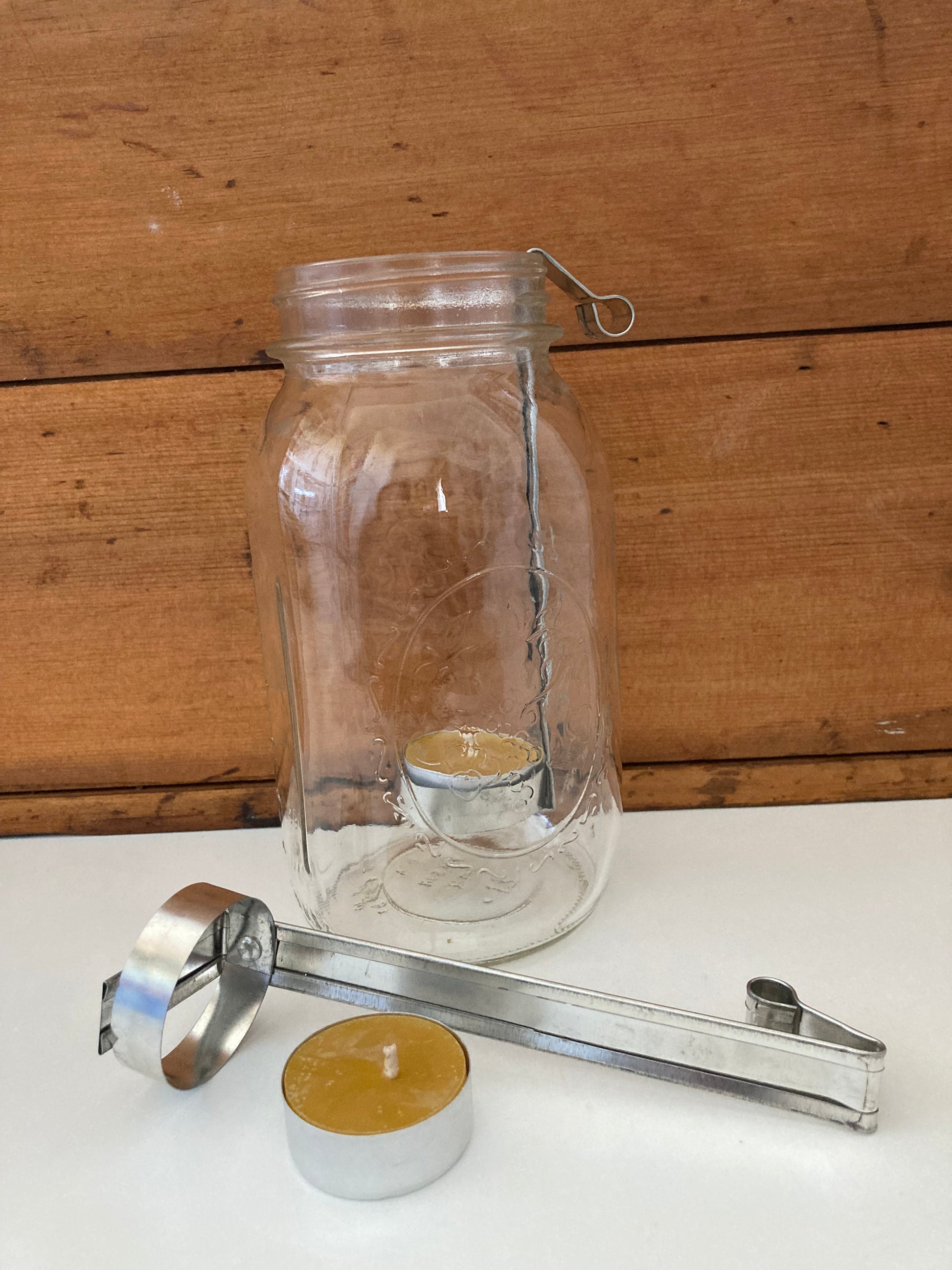 From Pietersma Tin Works another unique, wonderful handmade tin product. This TIN TEA LIGHT LANTERN HOLDER simply hooks over the edge of a quart/litre sized glass Mason jar. Place a tea light in the base of the holder to create your own indoor/outdoor lantern light.