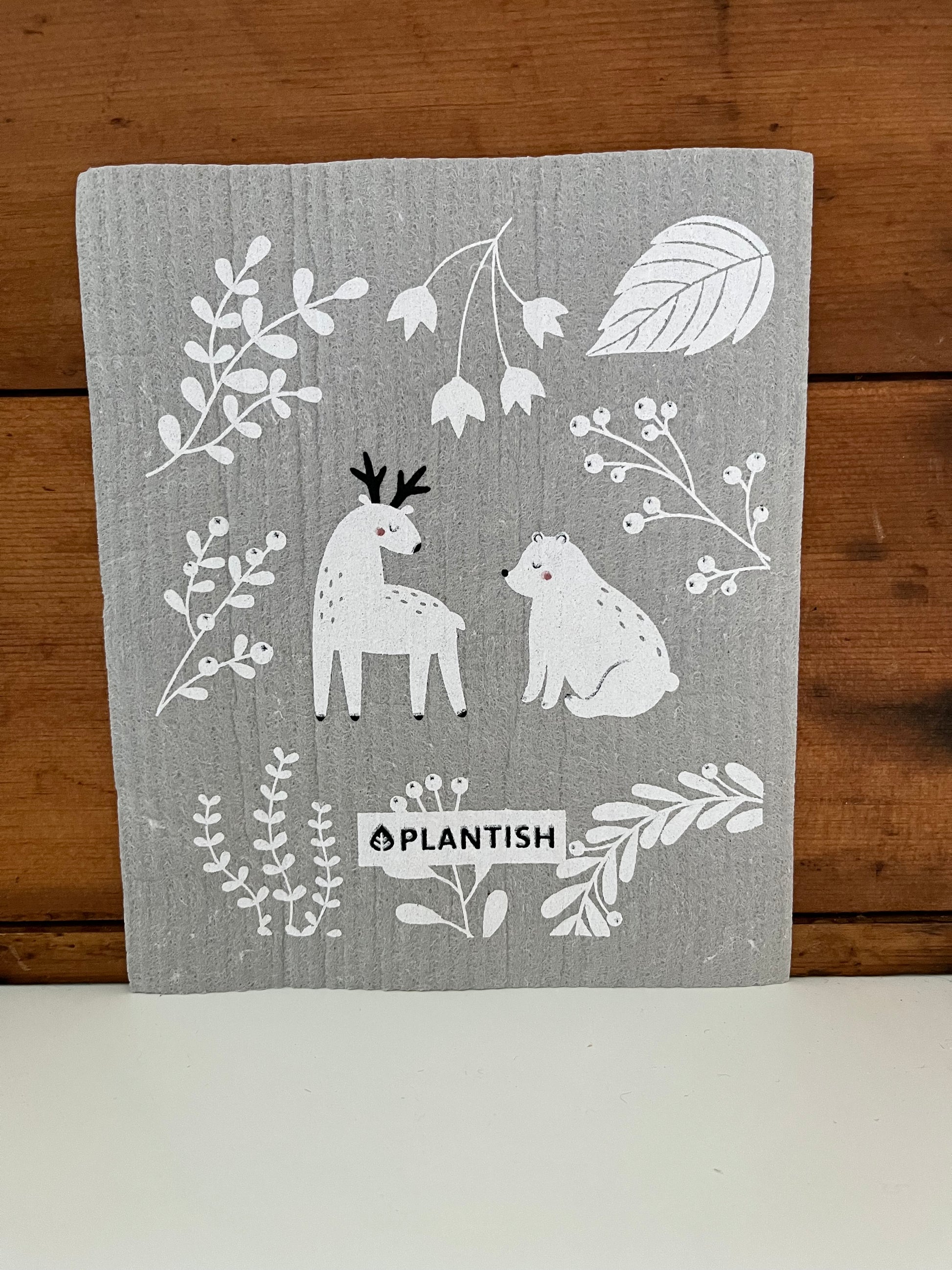 NEW! From Plantish, this is their DEER-BEAR /GREY SWEDISH SPONGE CLOTH! Always, re-usable!