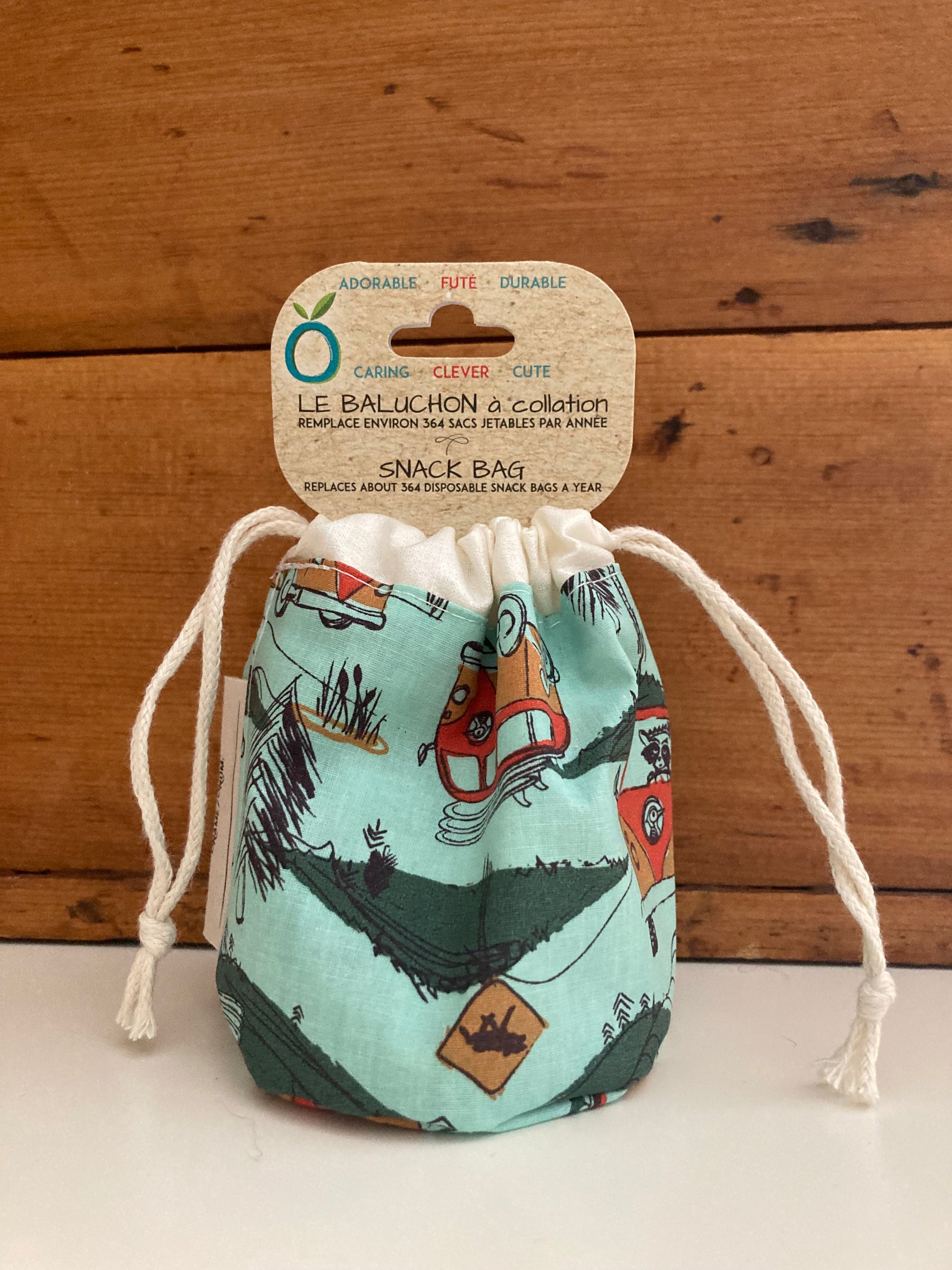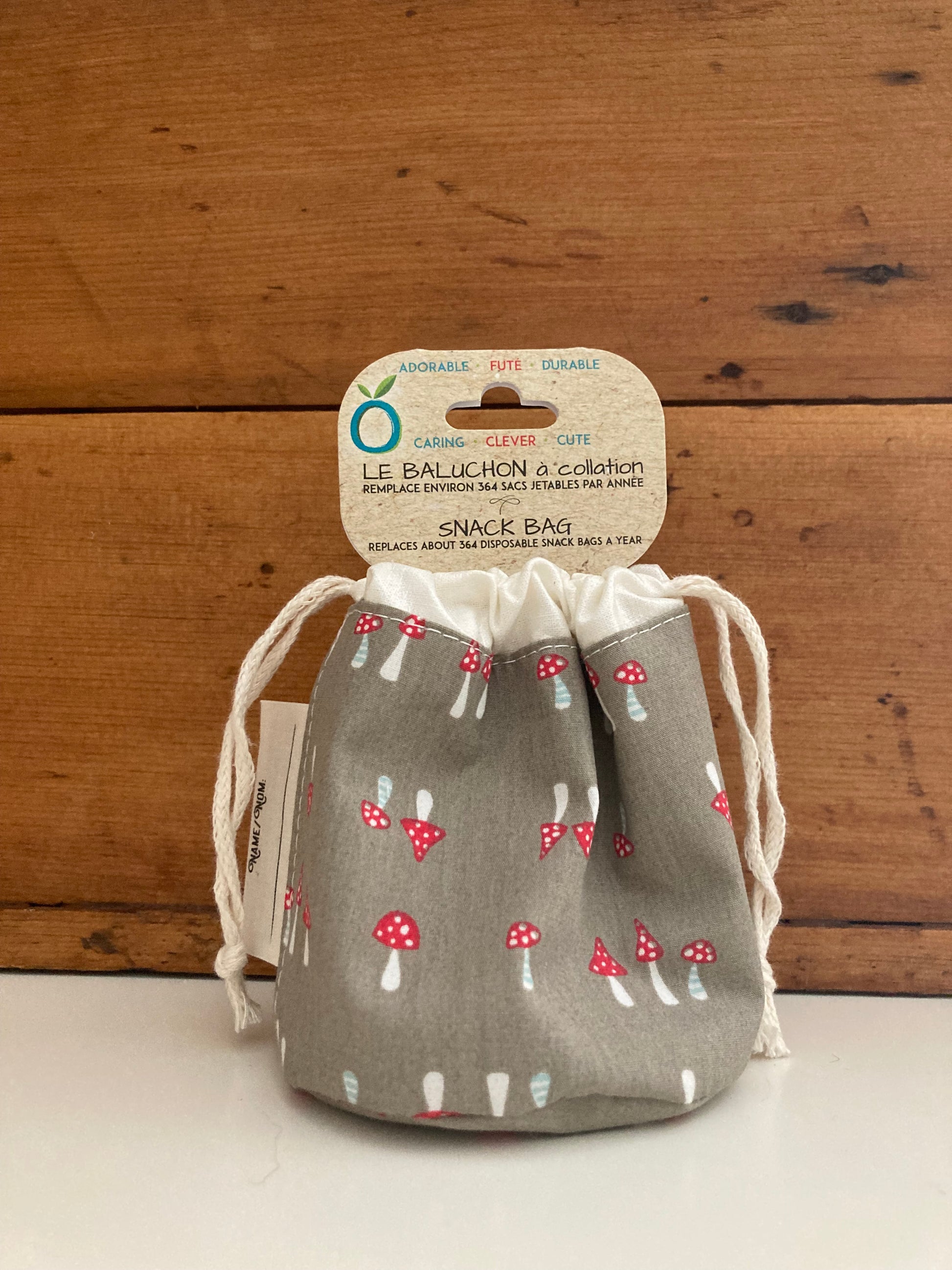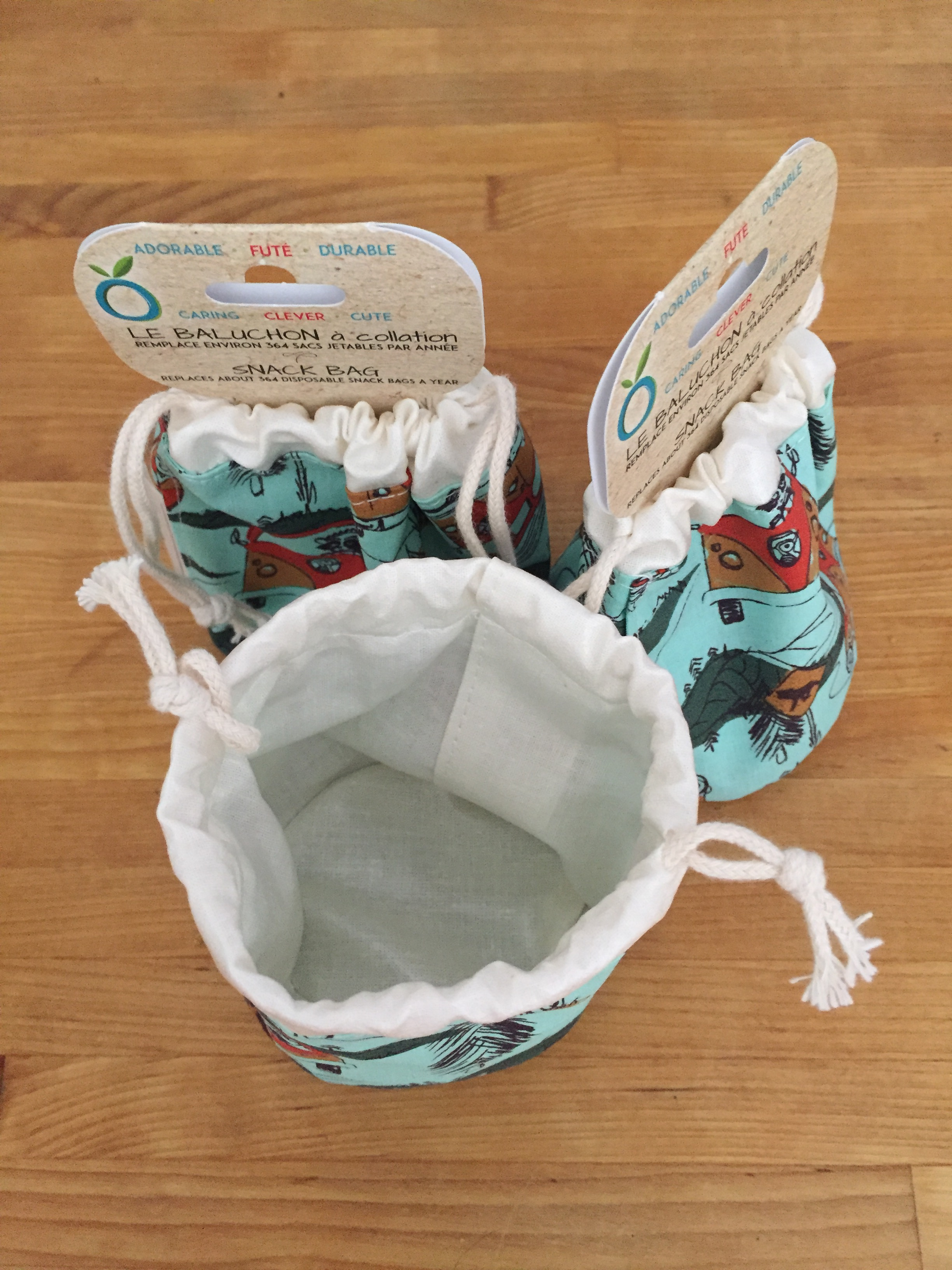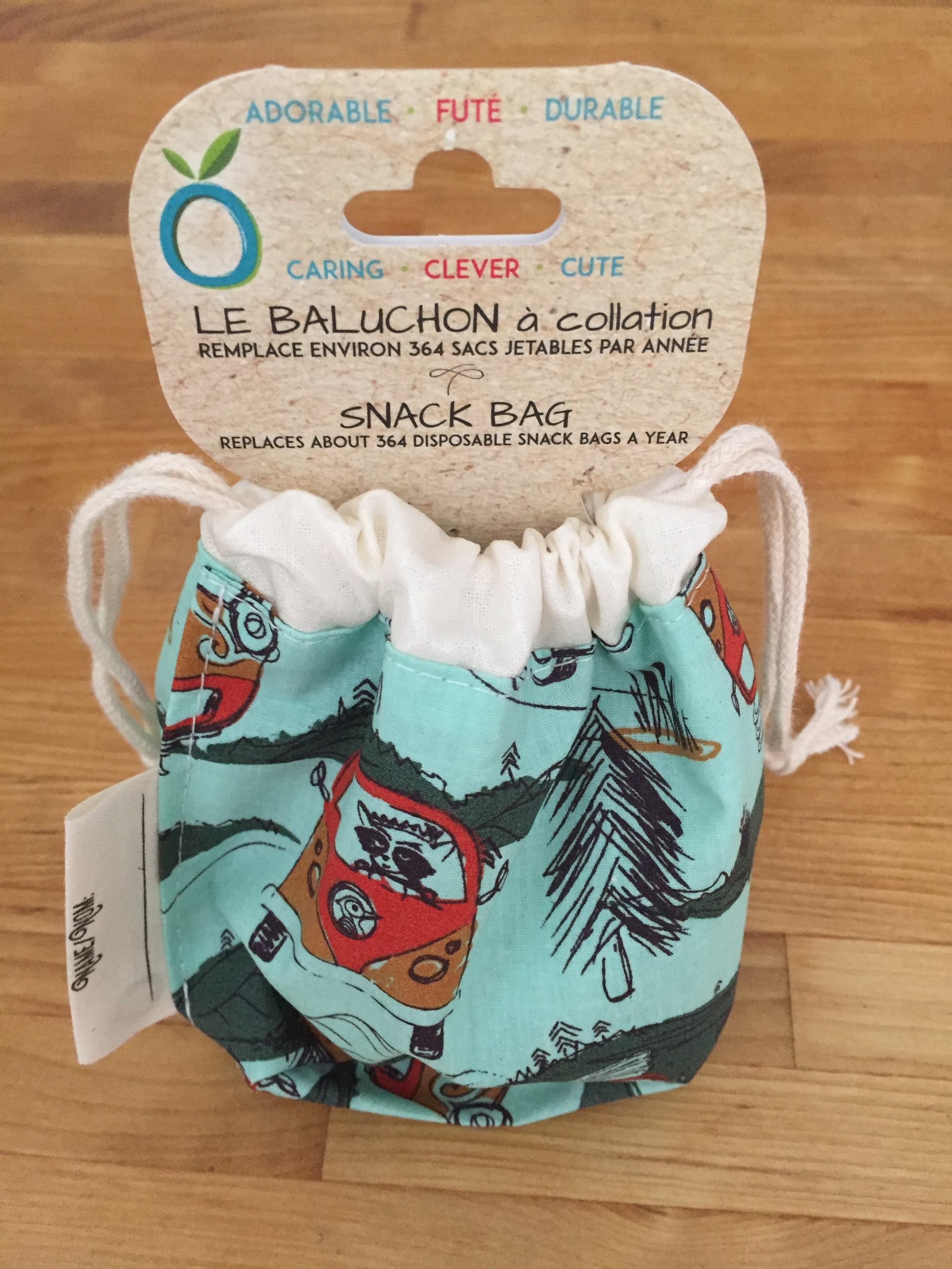 Parents will appreciate this very well made SNACK BAG from OKO Creations in Montreal. All Organic Cotton! Actually made in Montreal! And Kids will love the ease of use.