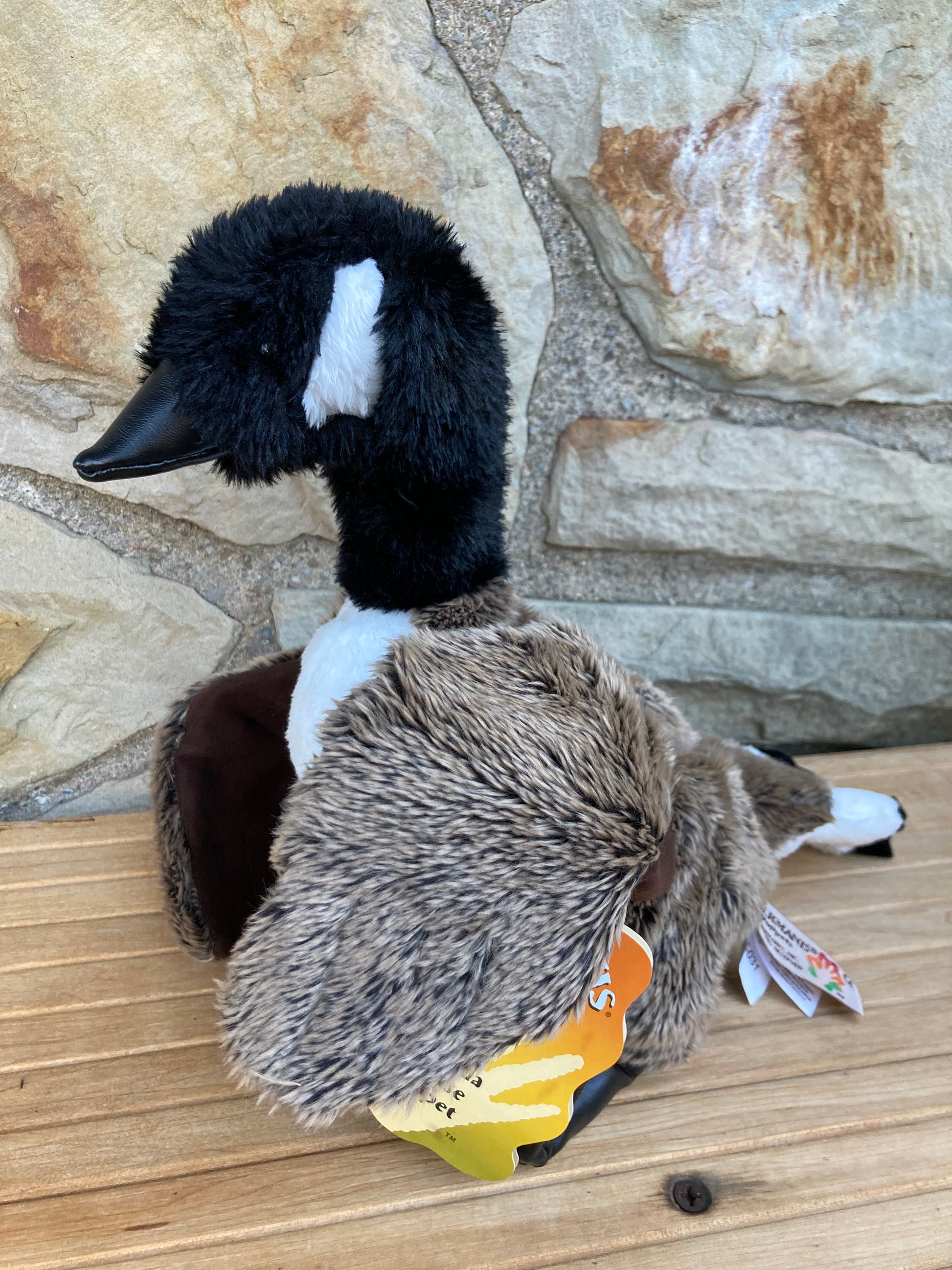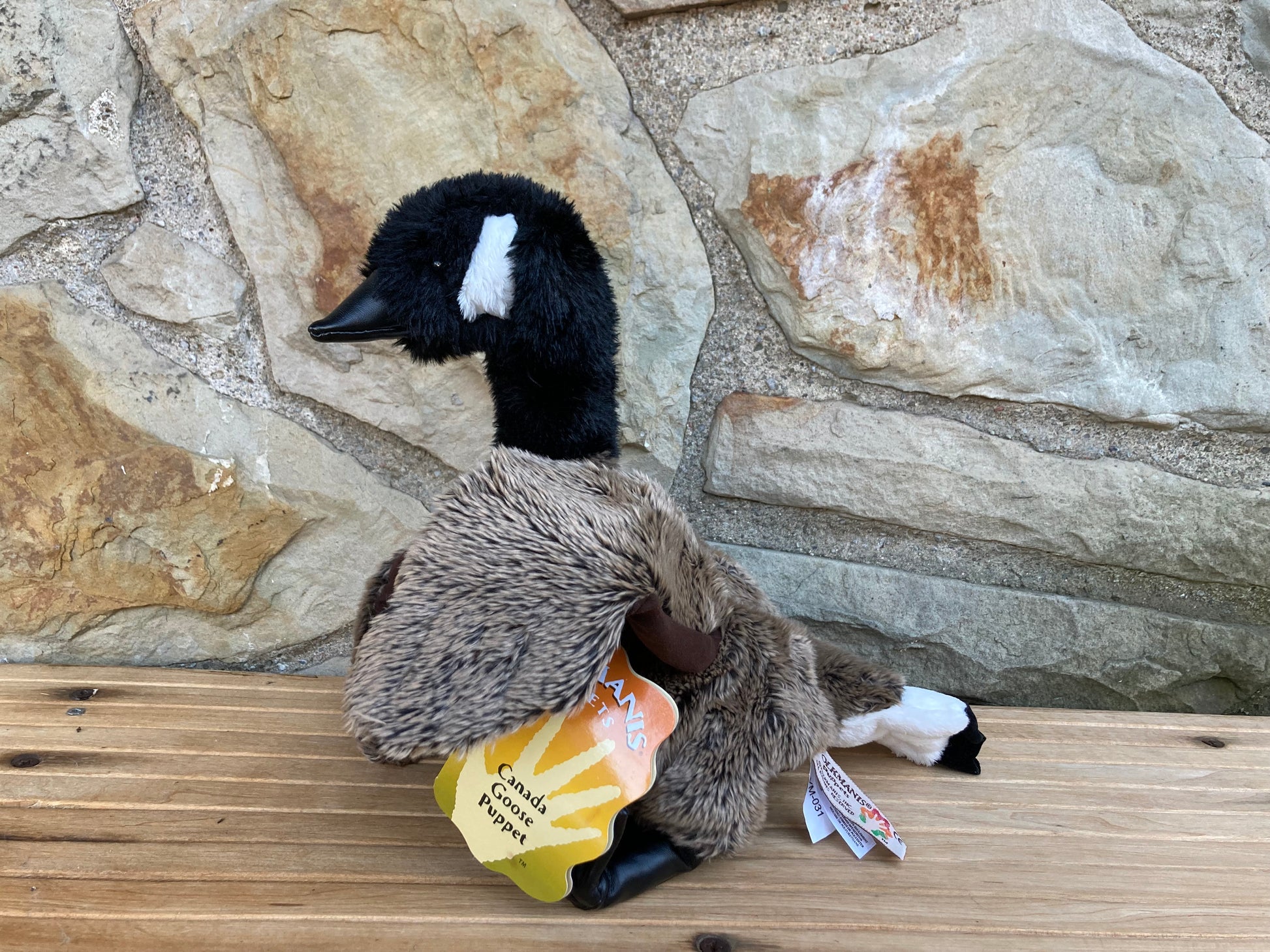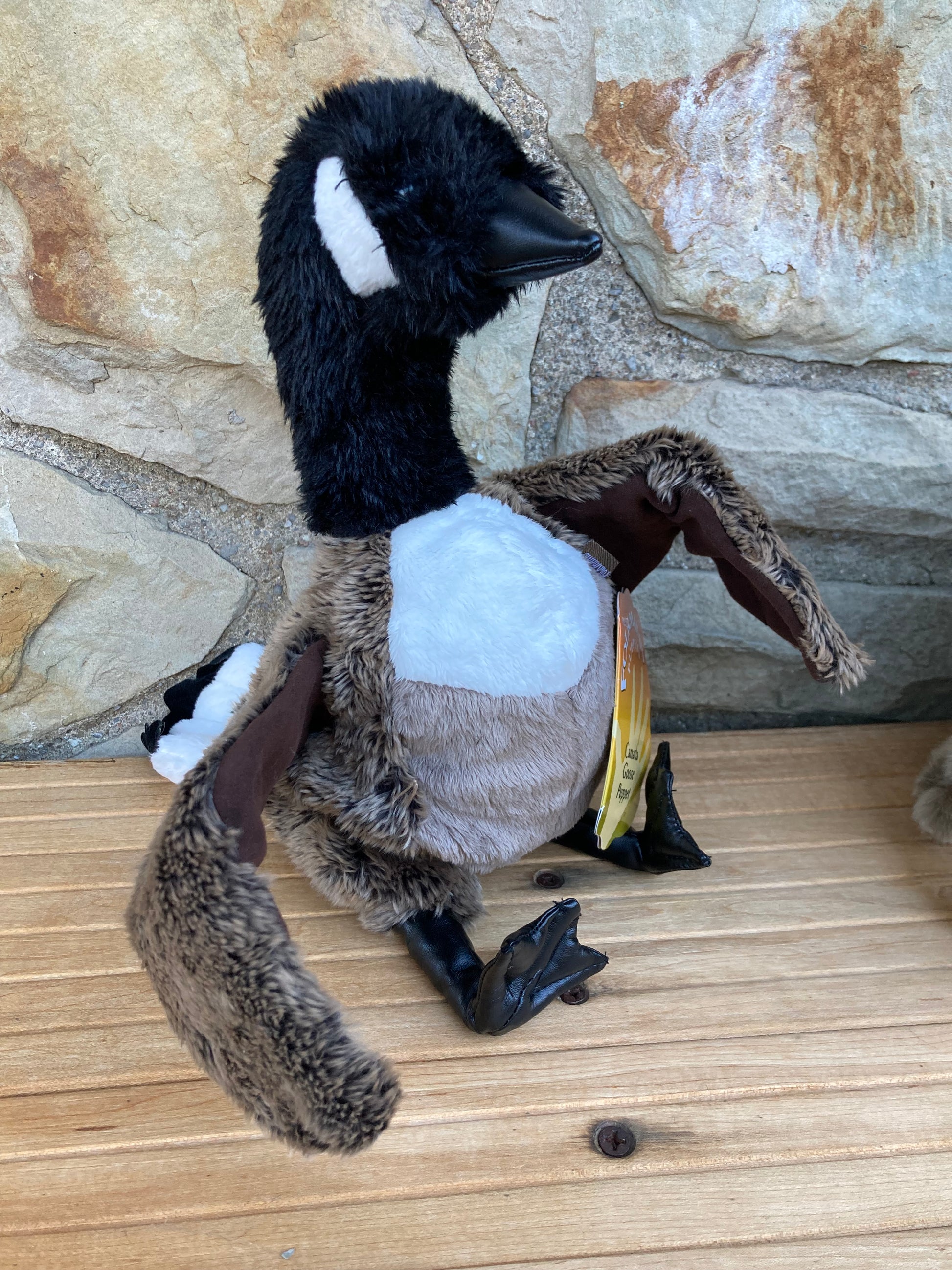 This is their fabulous CANADA GOOSE PUPPET. Living all over North America... with many adapting to large urban areas... like Downtown Toronto!, the Canada goose is perhaps best known as Canada's National Bird, although that distinction actually belongs to the Grey Jay. The Canada Goose has been an important part of the Canadian landscape, and an important bird to the First Nations people of the Arctic. They have heavy downy feathers to keep them warm all winter!