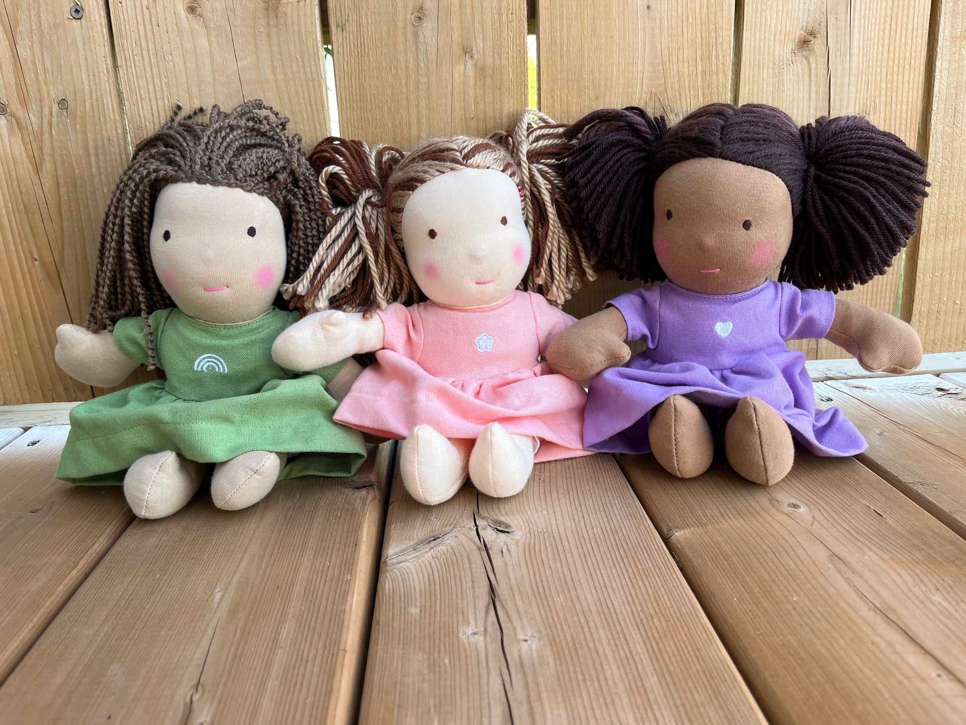 Waldorf inspired dolls will help develop imagination and creativity in young children. Made with fine craftsmanship and detailed handwork, a specialized technique is used to achieve the one-of-a-kind Waldorf features!