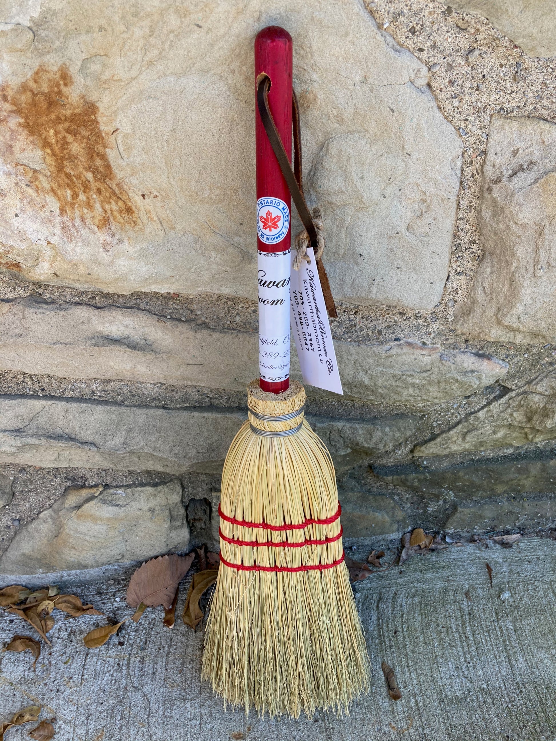 Made by hand by the Kwartha Broom Company in Kirkfirld, Ontario.