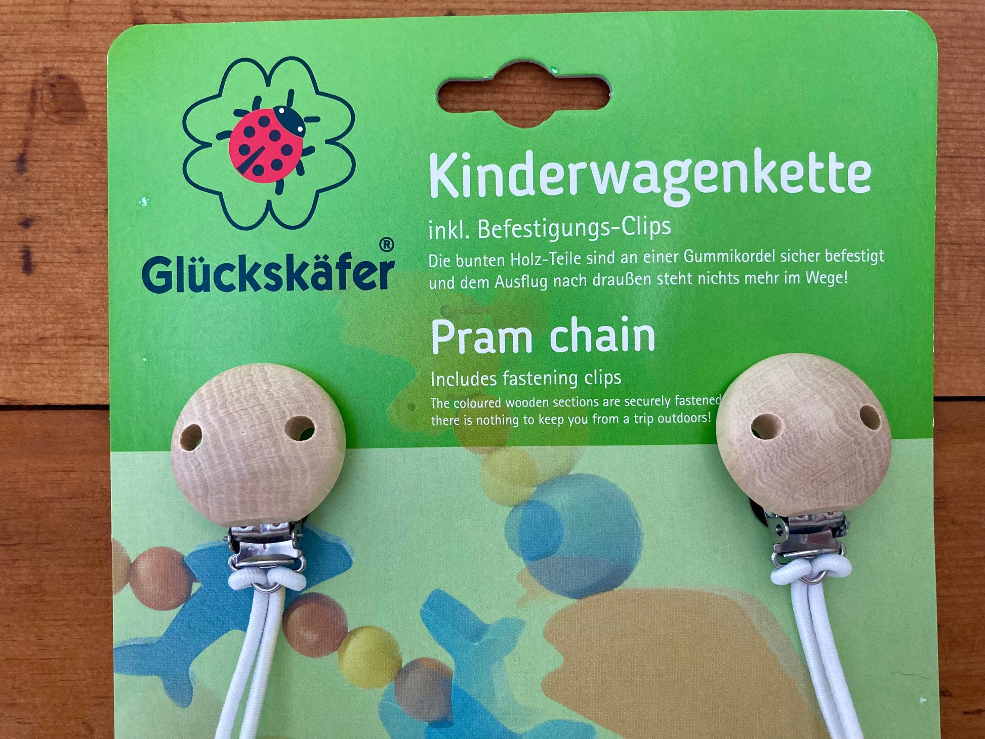 Wooden Toy, Baby - PRAM/STROLLER CHAIN, with clip-ons!