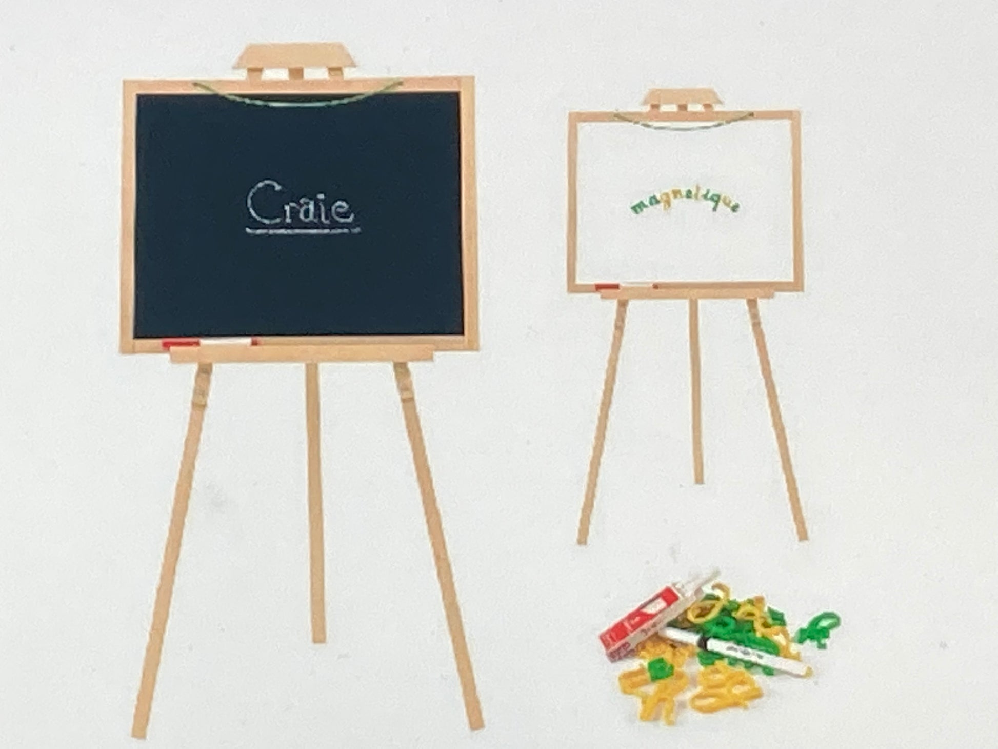This child-sized BLACKBOARD is perfect for the home-school room. Or, the playroom. Who doesn't remember playing school? Practice spelling, in English and French. Work on your math homework. And, especially, draw beautiful pictures.