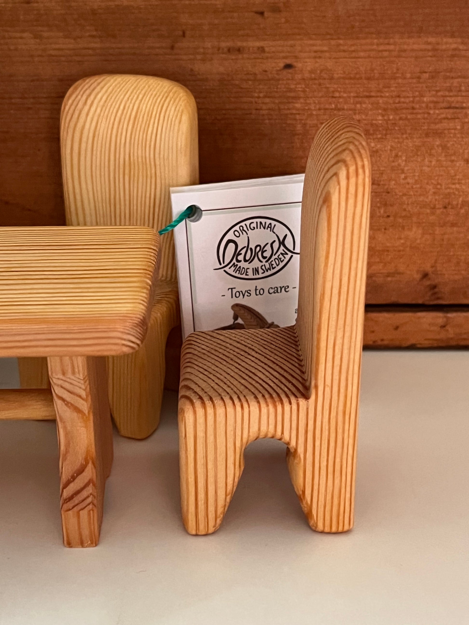 A beautiful solid WOODEN DOLL HOUSE DINING CHAIR, made by Debresk Toys in Sweden.