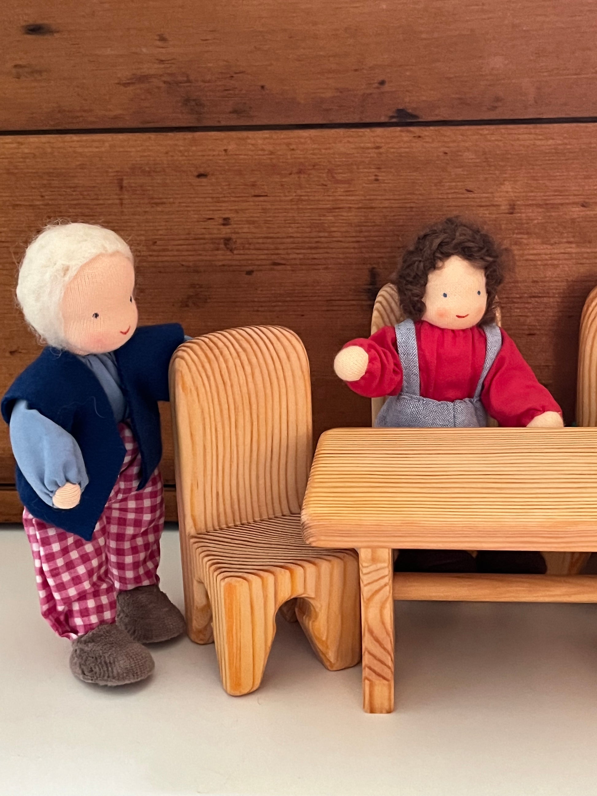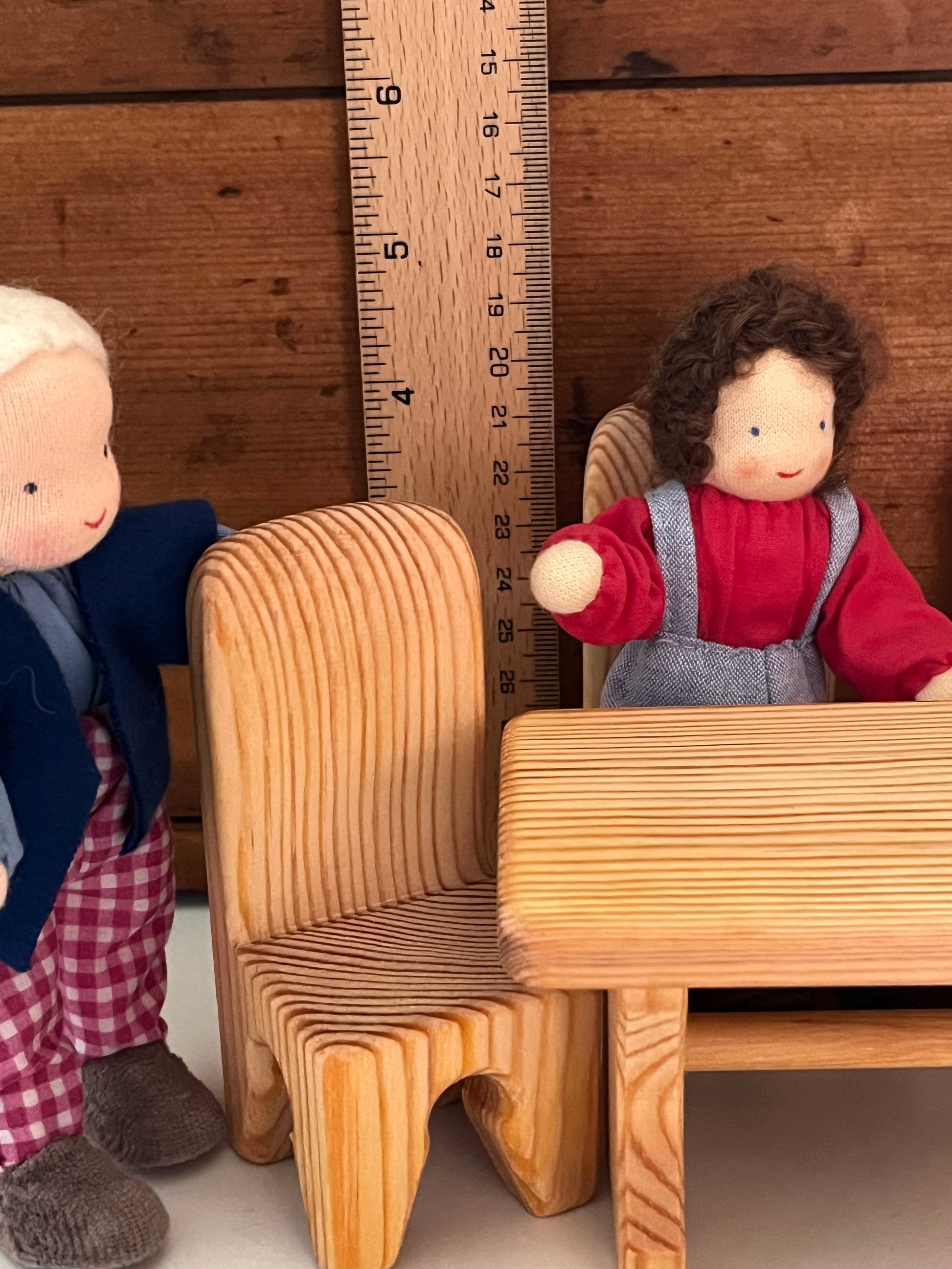 This solid Wooden DollHouse sized Dining Chair will last a lifetime of play! Perfectly sized for all Evi and Grimm Dollhouse Dolls. Dollhouse sized TABLE sold separately.