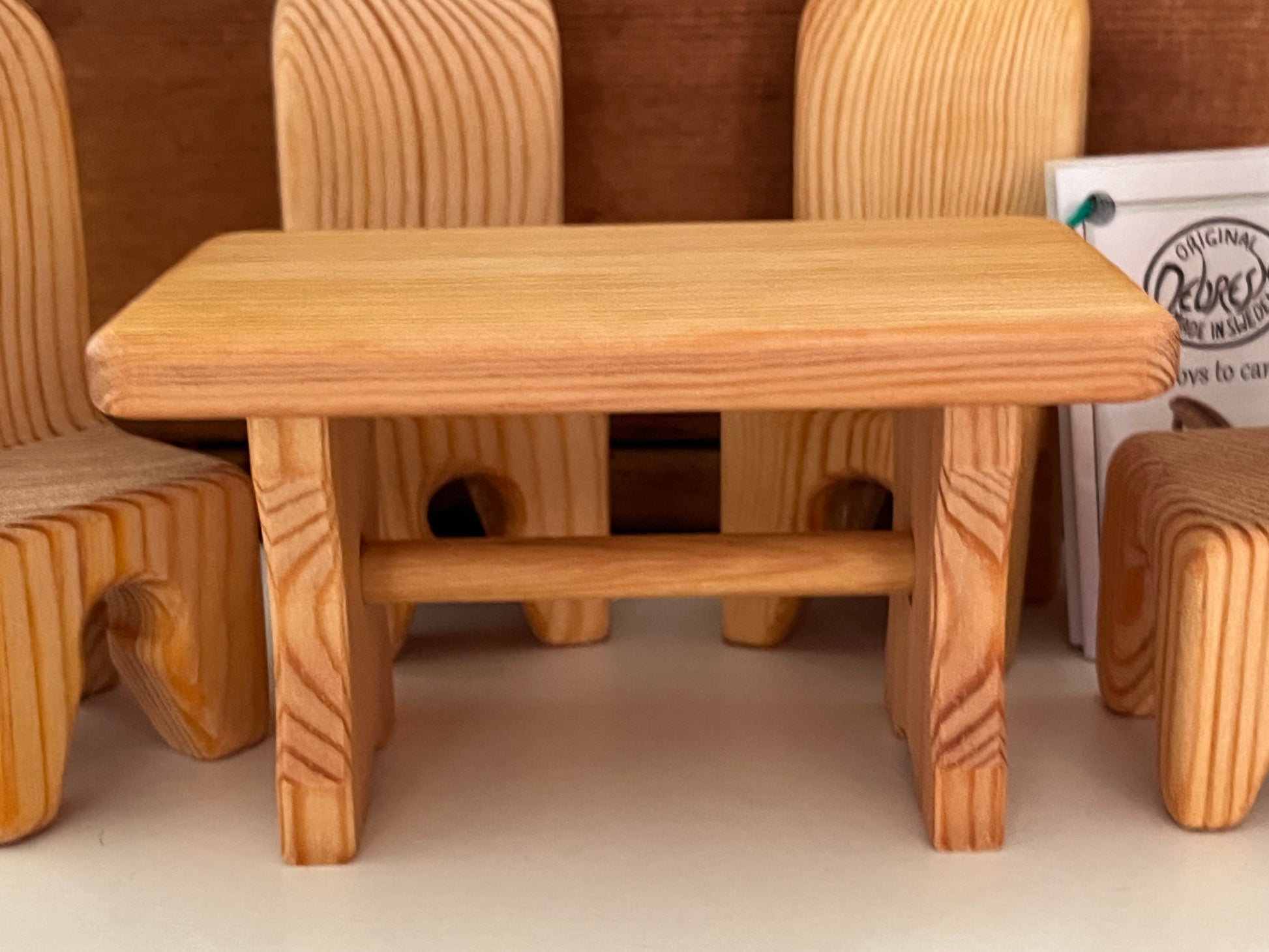 A beautiful solid WOODEN DOLL HOUSE DINING ROOM/ KITCHEN TABLE, made by Debresk Toys in Sweden.