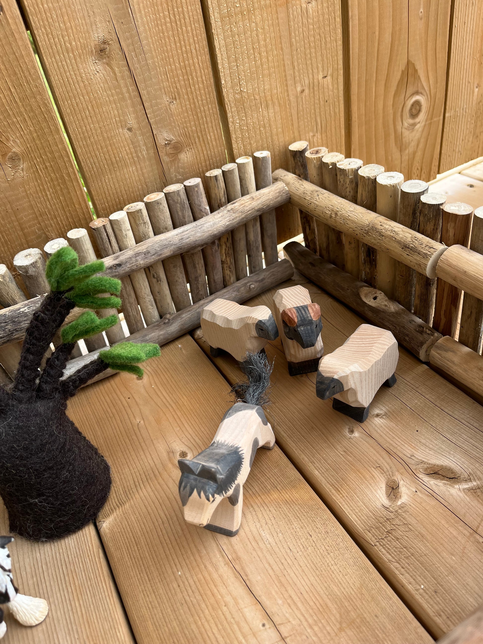 Can be beautifully paired with any Papoose Wool Felt Toy, any Ostheimer Wooden Figure, Schleich Farm Animals, or any of the Grimm's Dollhouse Dolls. All Sold Separately.