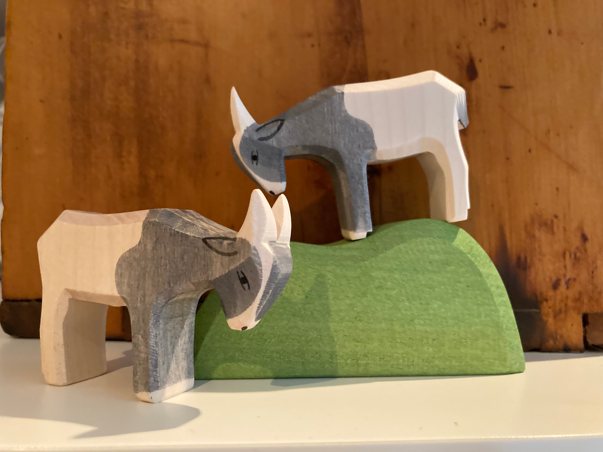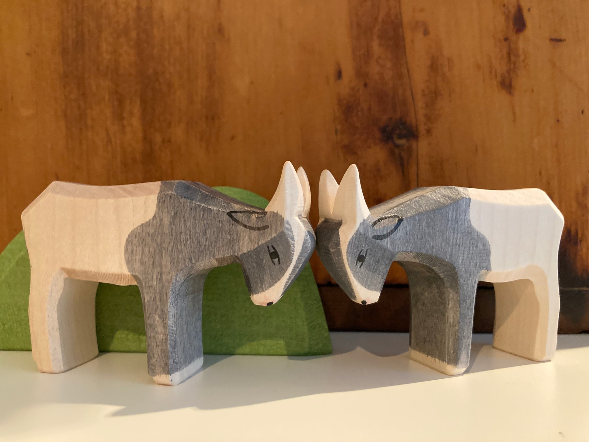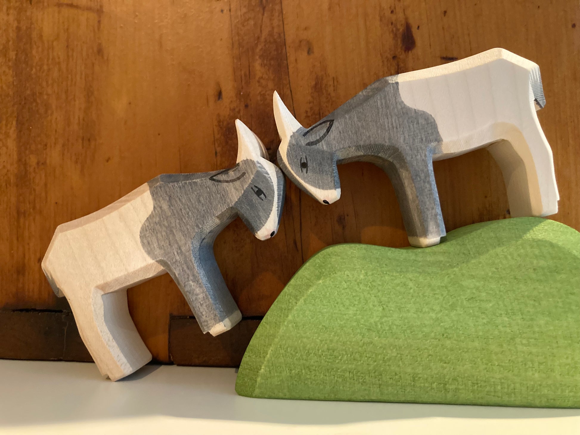 Here is their small GREY&WHITE GOAT KID. Like all Ostheimer collectable figures they are hand-carved from a solid piece of wood, and then hand painted. To last a Childhood of play.