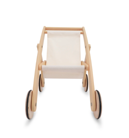 The Kinderfeets WOODEN DOLL STROLLER is a classic small size stroller for little ones who want to take their favourite dolls and stuffed animals on adventures outside …and inside!
