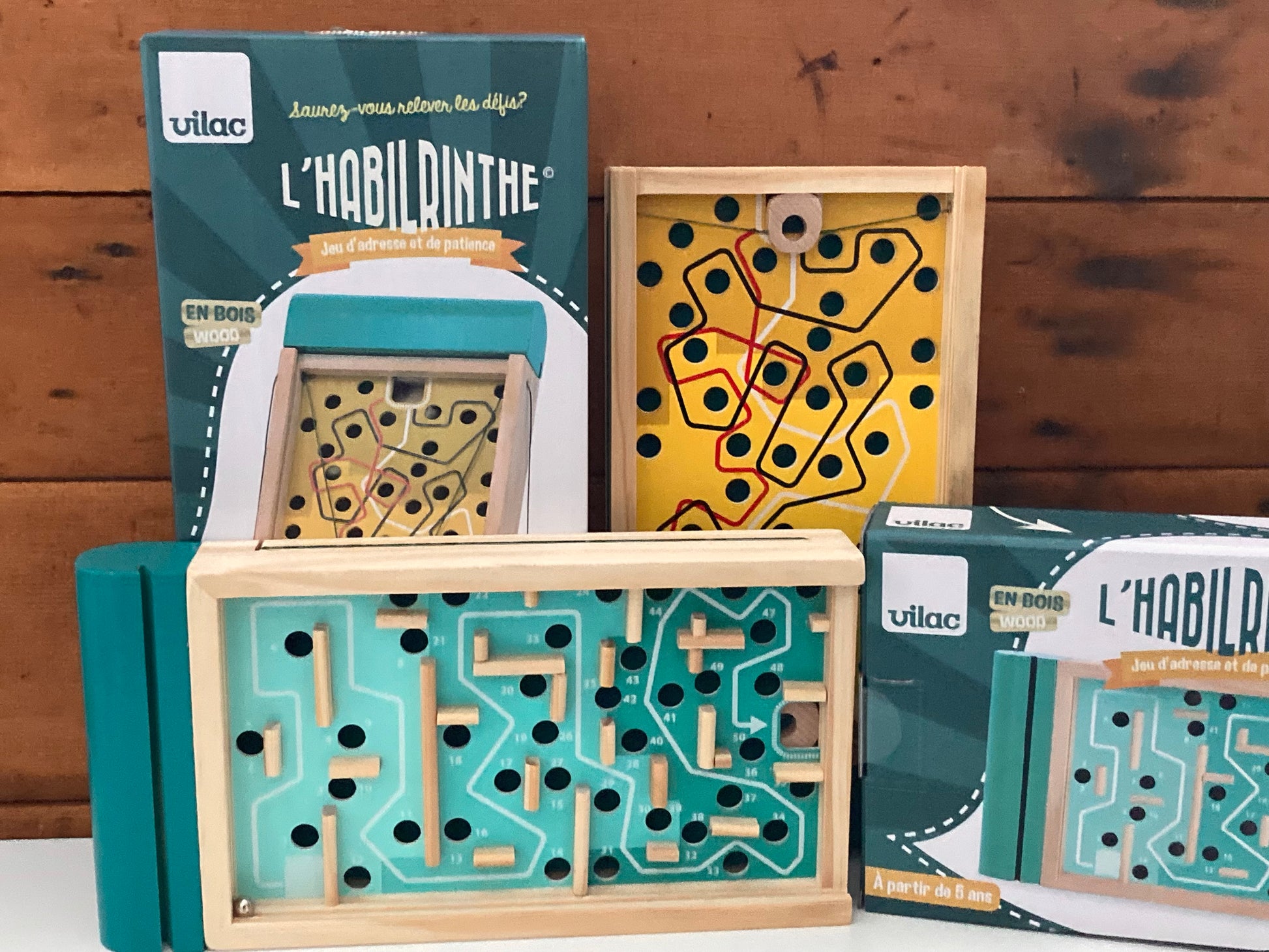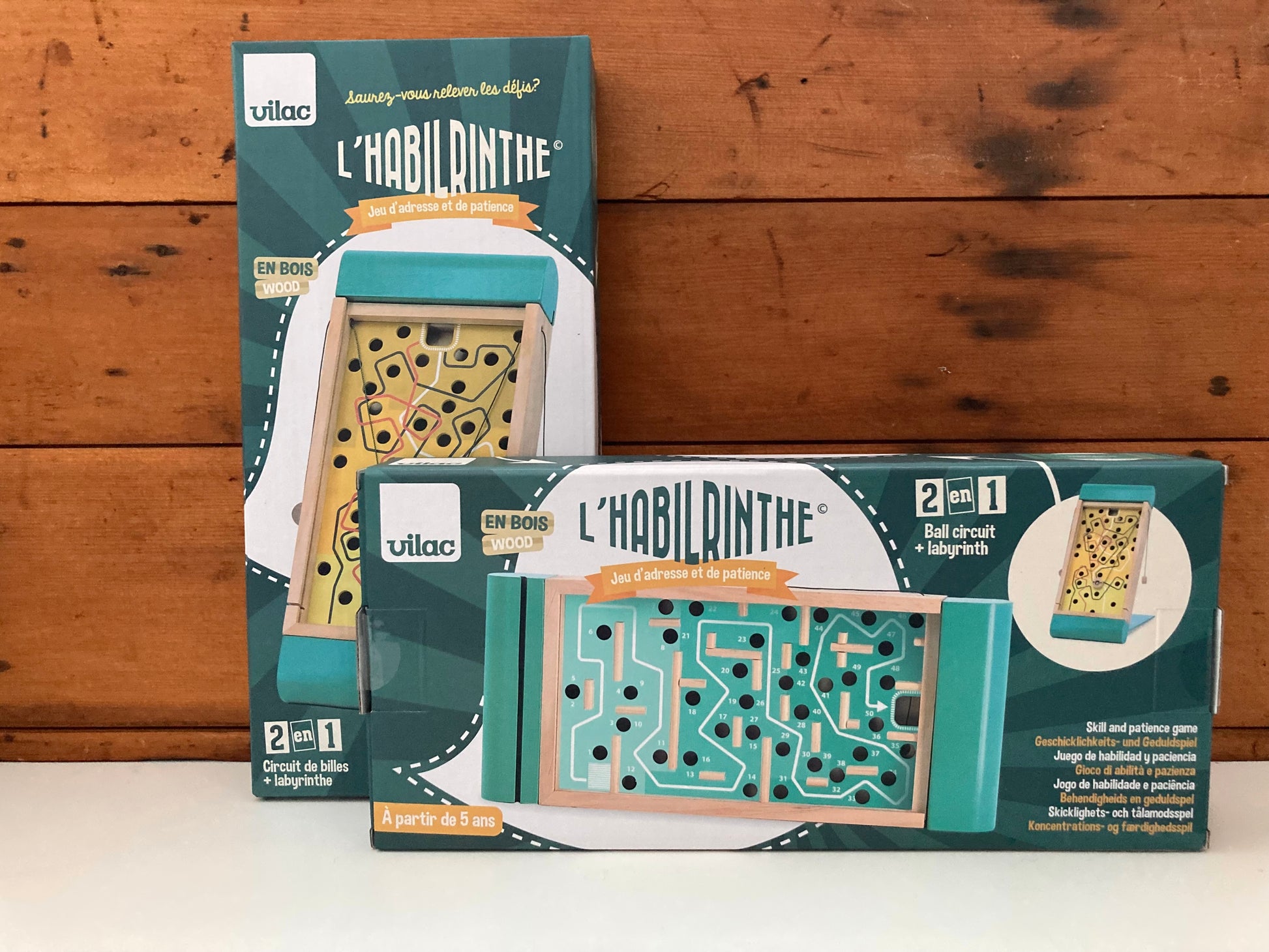 Little holes, little holes, and even more little holes! The WOODEN L'HABILRINTHE a contraction of "ability" and "labyrinth", is a two-in-one LABYRINTHE SKILL GAME!