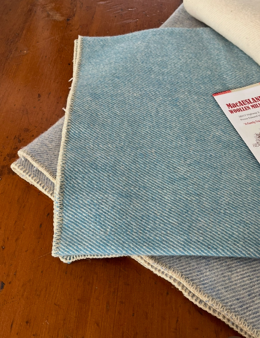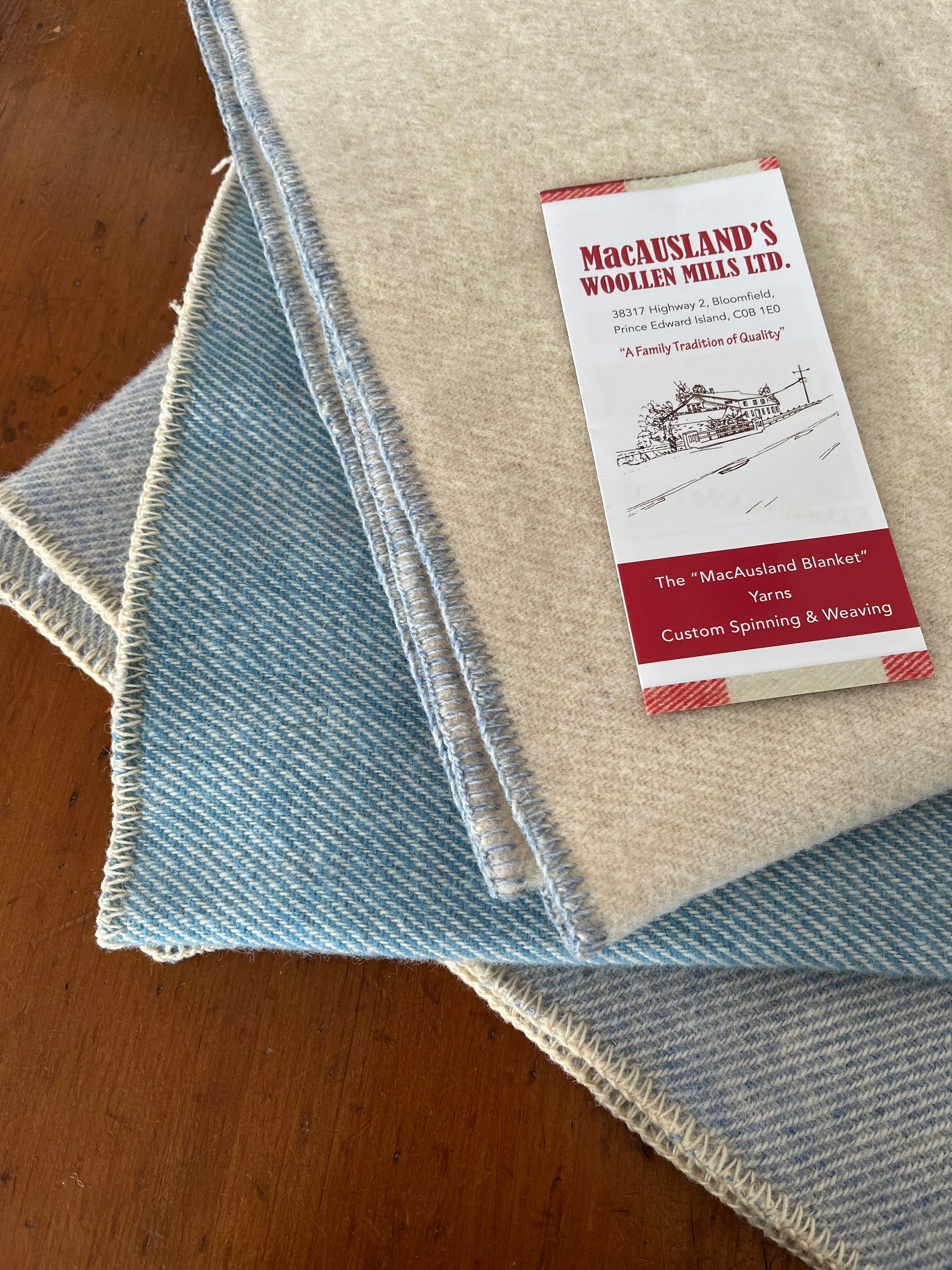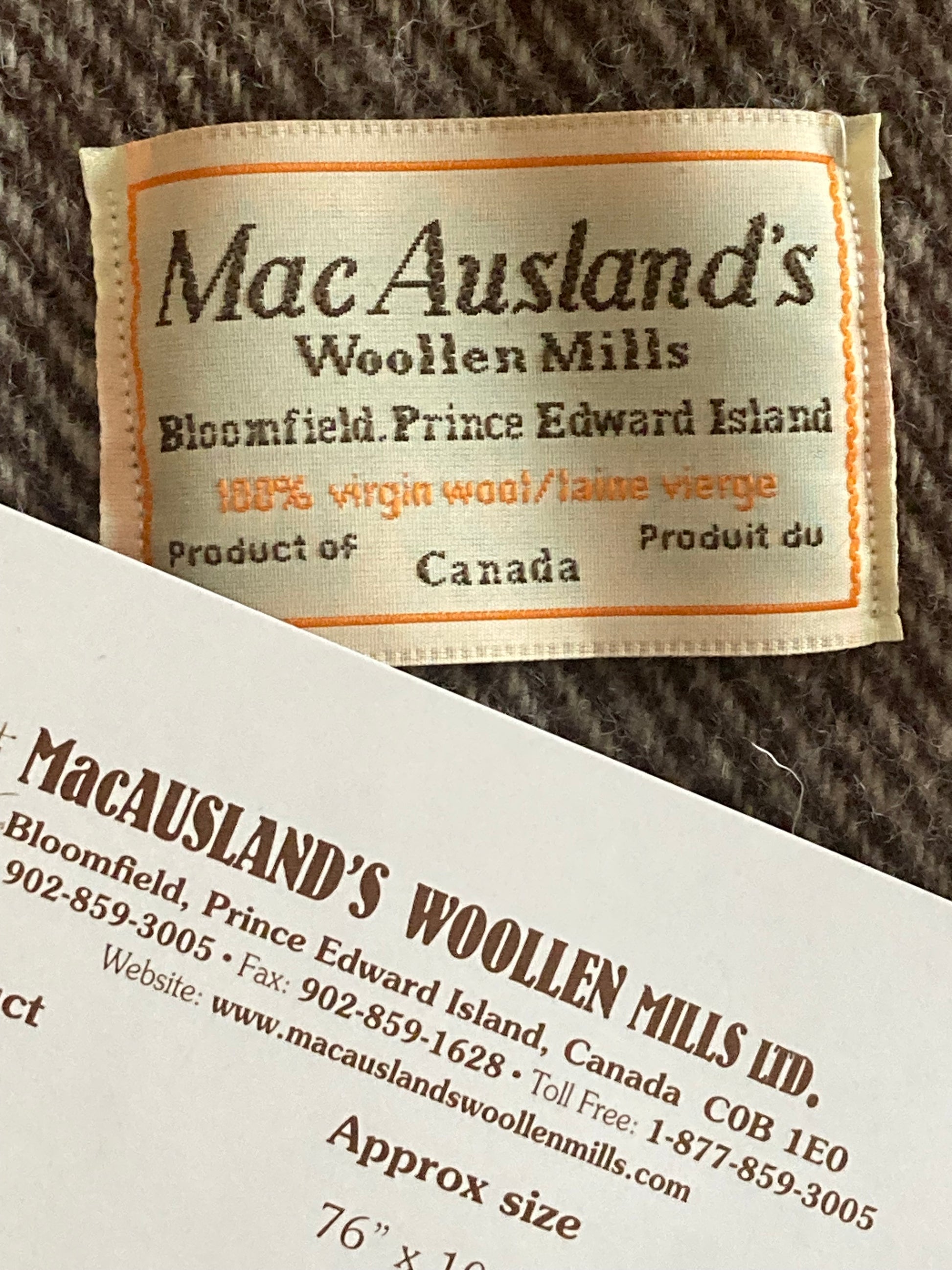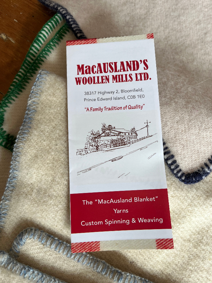 Made in Canada. MacAusland's Woolen Mill, Bloomfield, PEI. World Famous Wool Blankets. Since 1932. Supporting small Canadian Businesses.