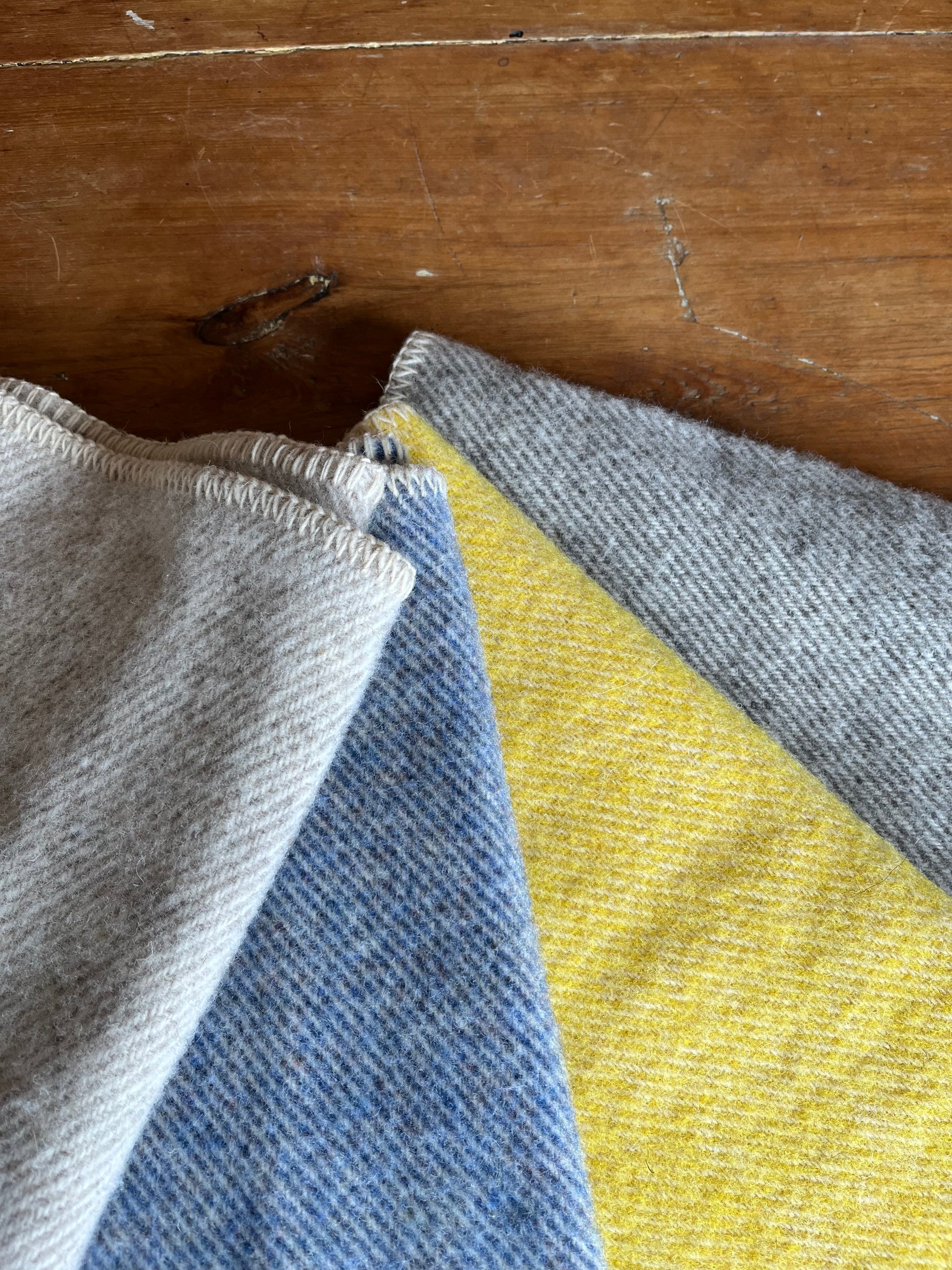 NOTE: All colours are in a light herringbone tweed. Each blanket is individually made at the mill using natural 100% sheep wool, so slight colour variations are a natural result. Note: The YELLOW Wool Blanket can be a lovely Golden Yellow weave.